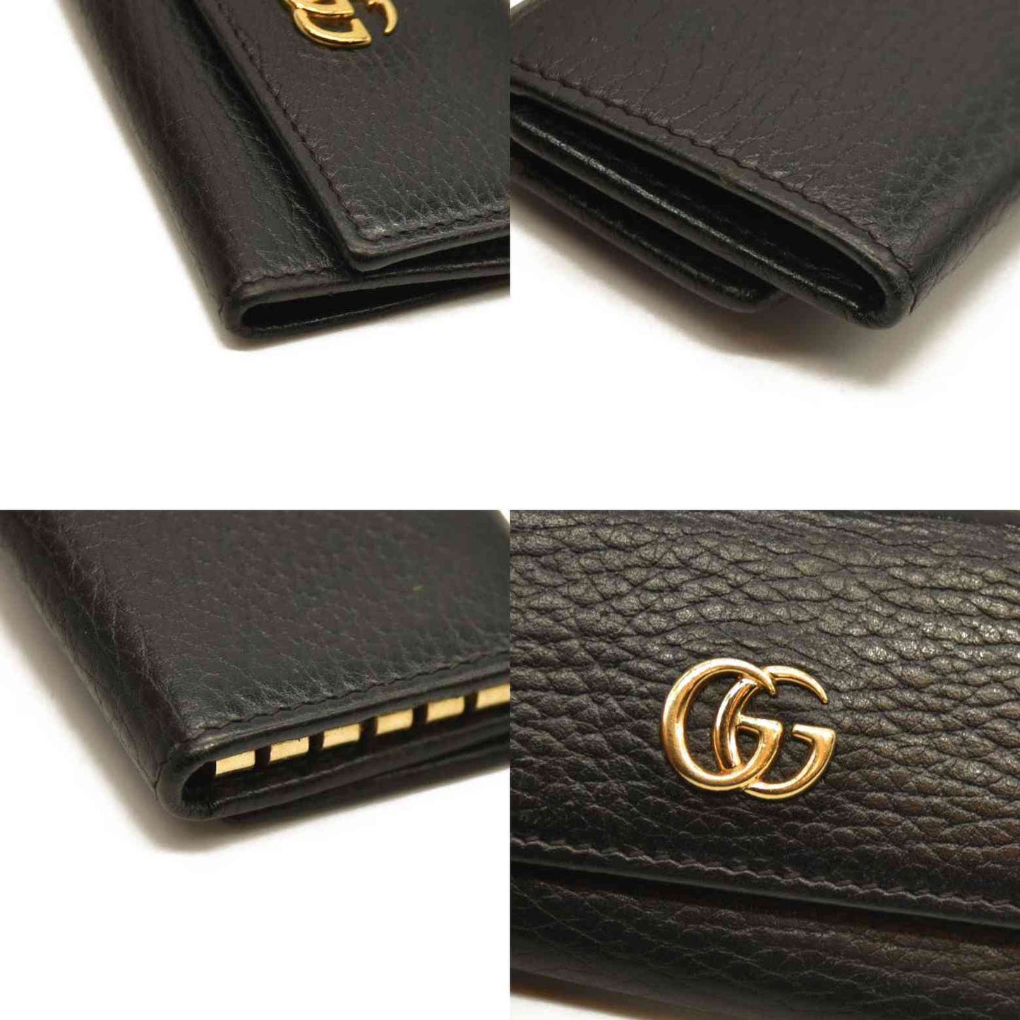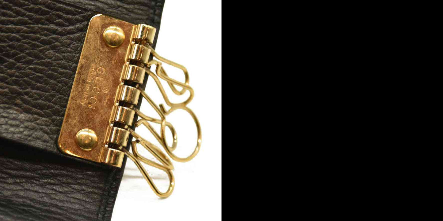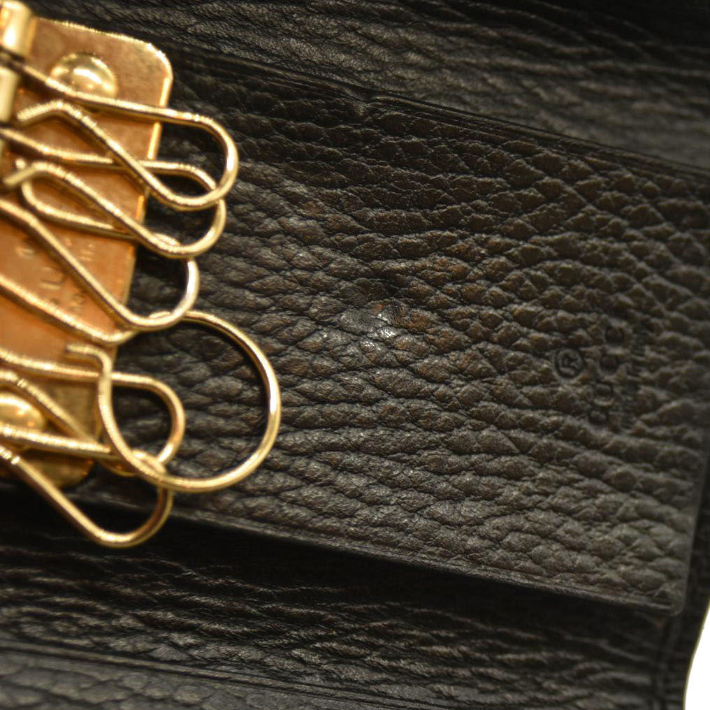 Gucci Pebbled Calfskin GG Marmont 6 Key Holder Black