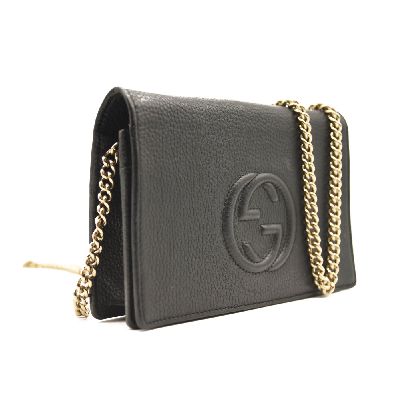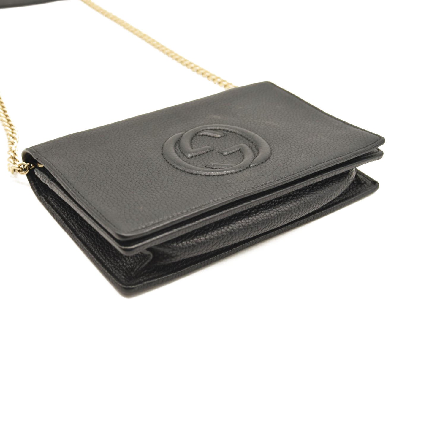 GUCCI Pebbled Calfskin Soho Wallet on Chain Black