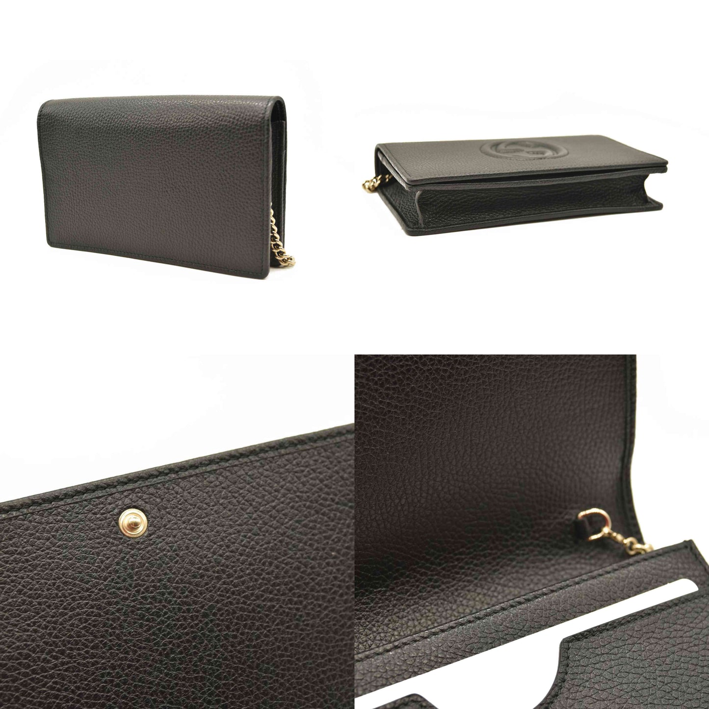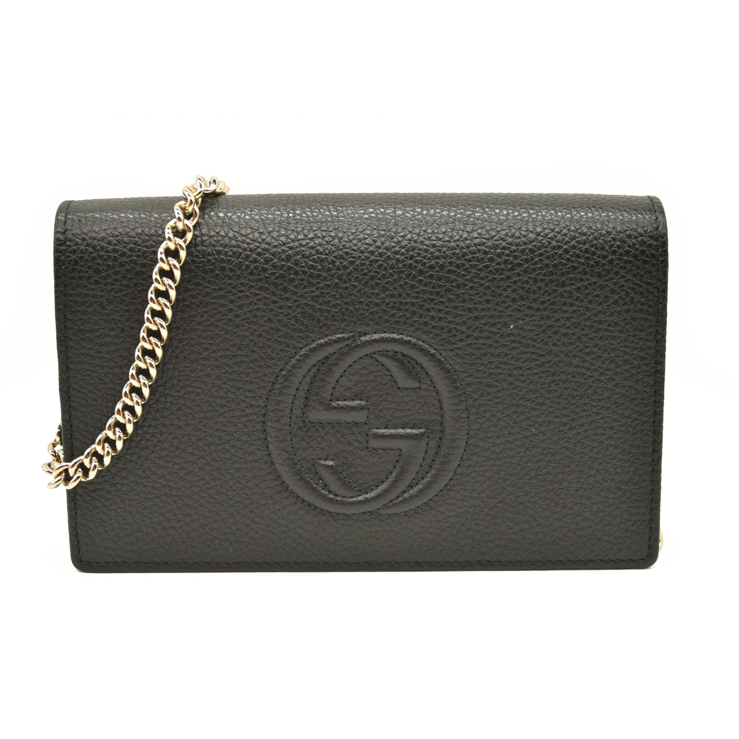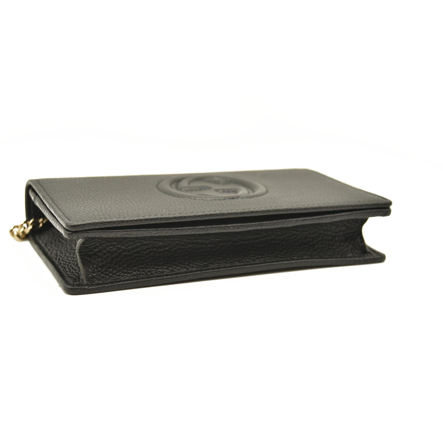 Gucci Pebbled Calfskin Soho Wallet On Chain Black