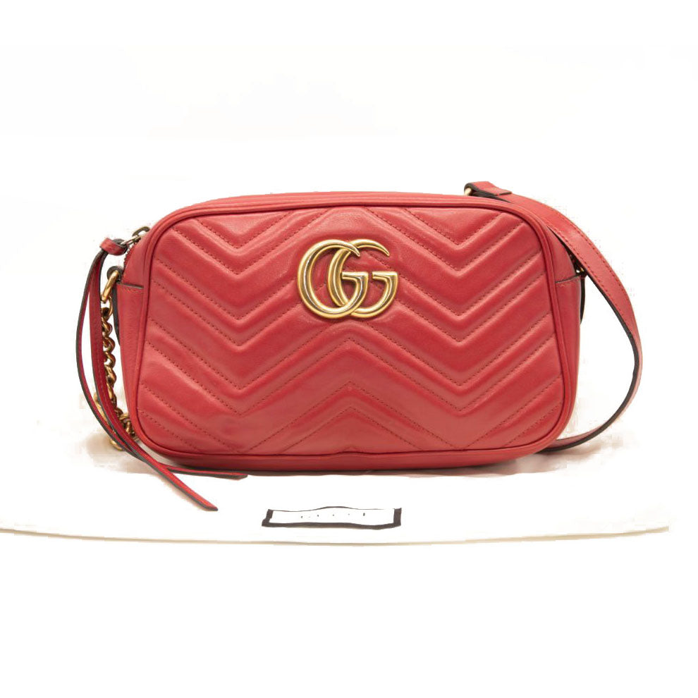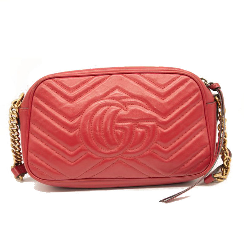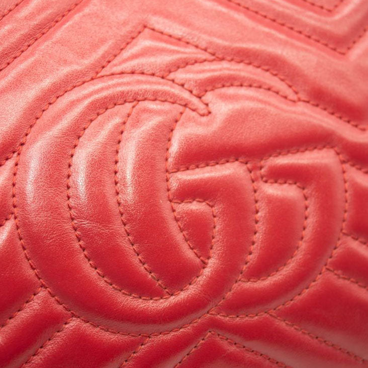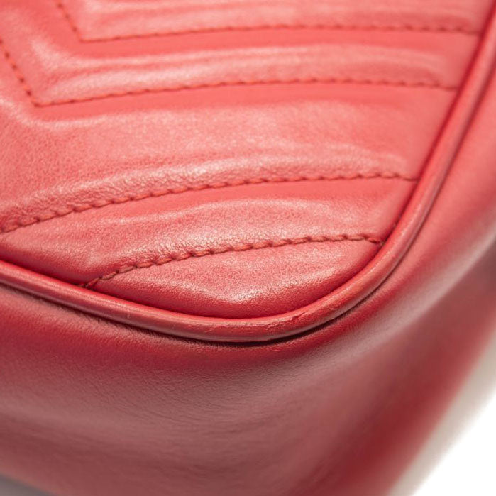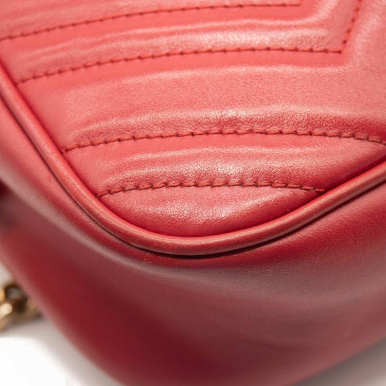 Gucci Calfskin Matelasse Small GG Marmont Chain Shoulder Bag Hibiscus Red