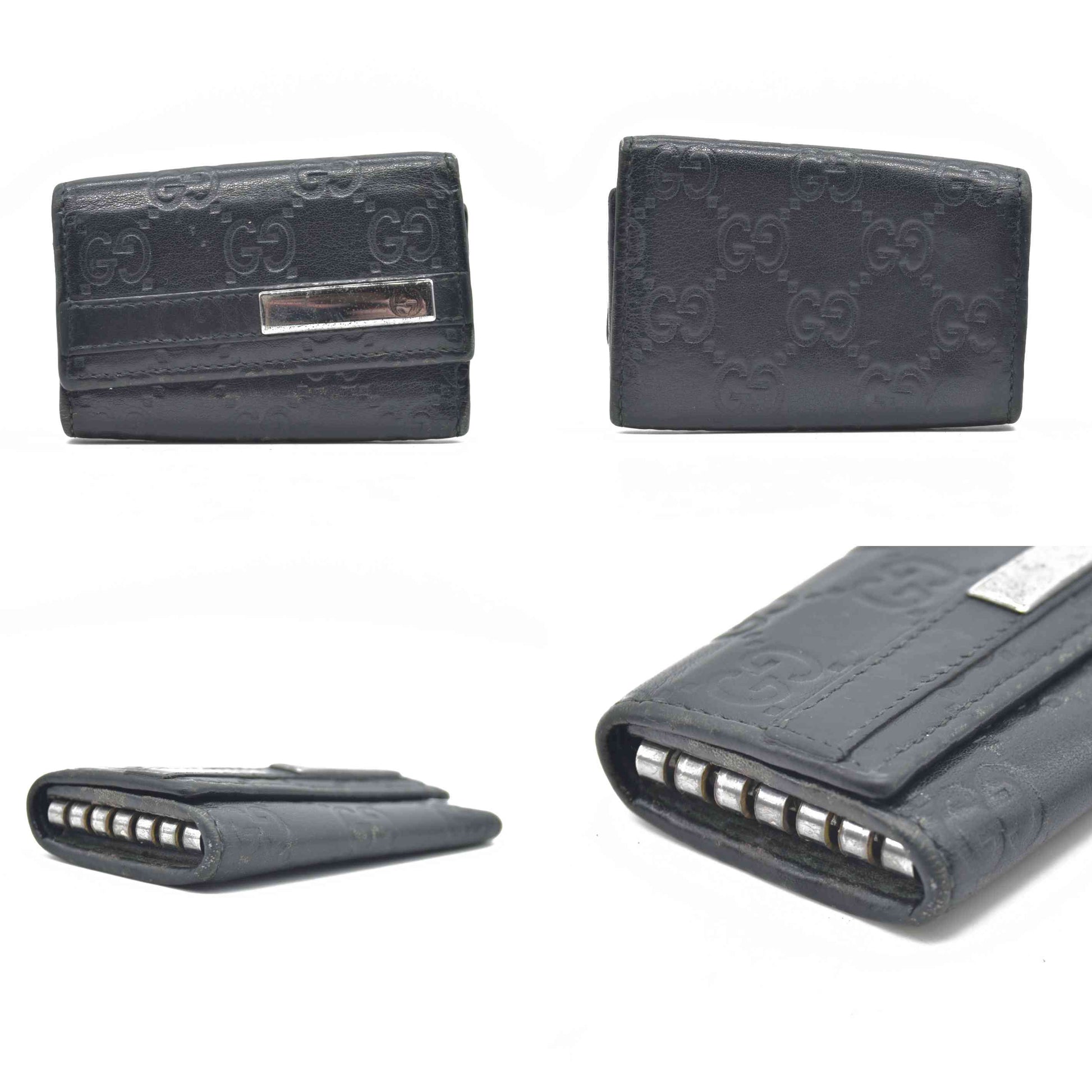 $350 GUCCI Ssima GG Logo Leather 6 Ring Key Case Black Marmont