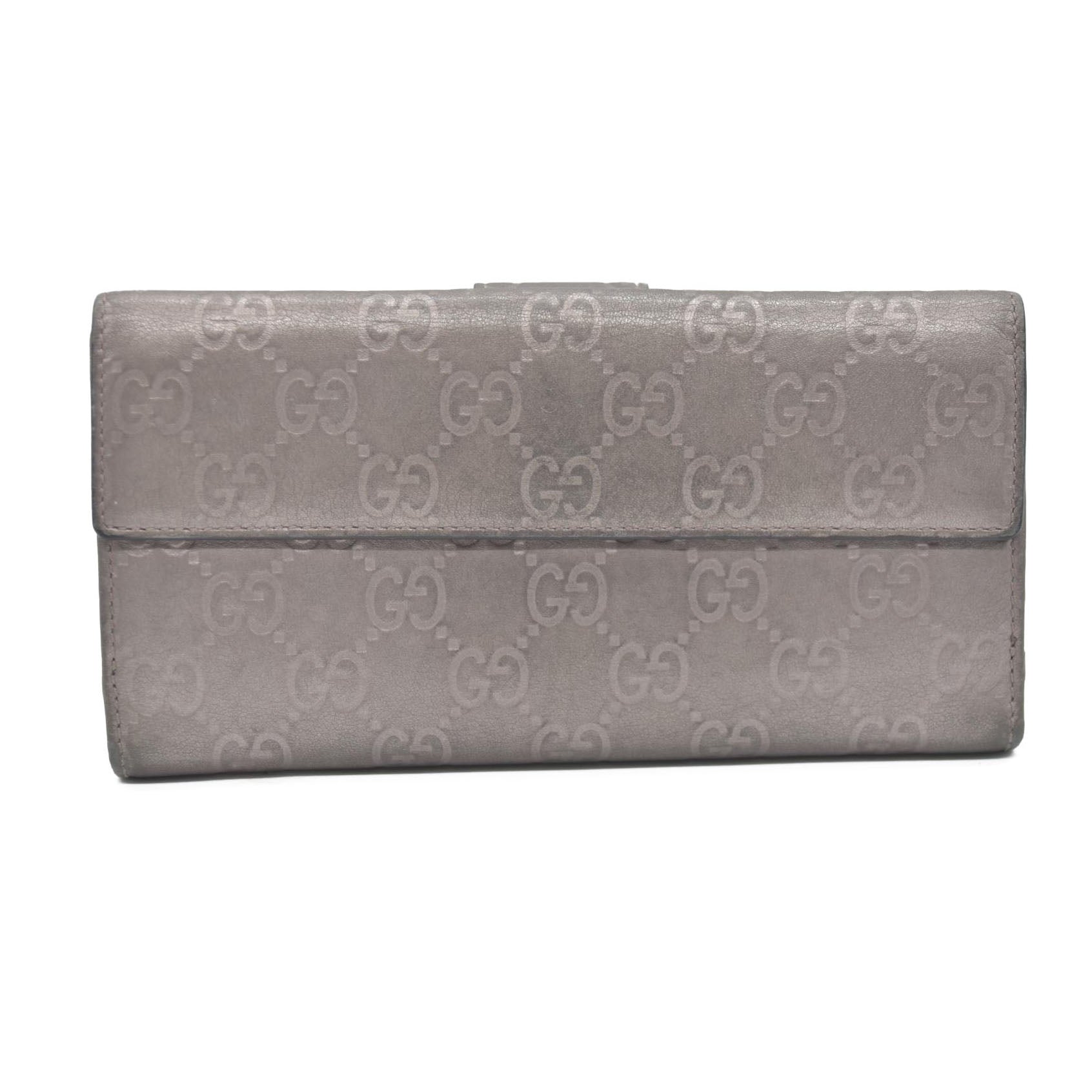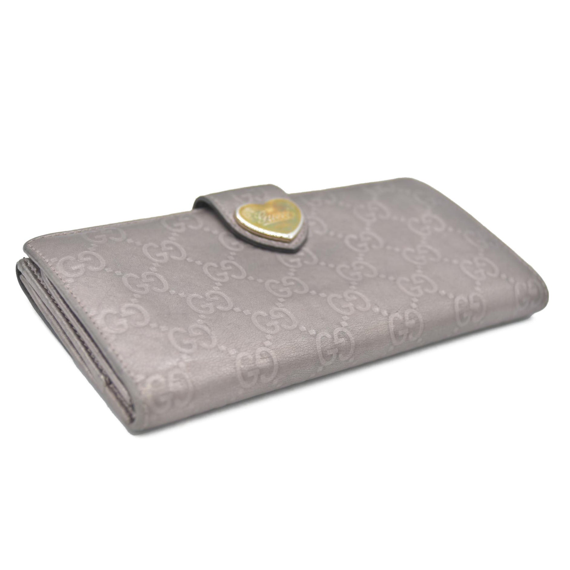 GUCCI Ssima Heart GG Logo Leather Long Bifold Wallet Gray