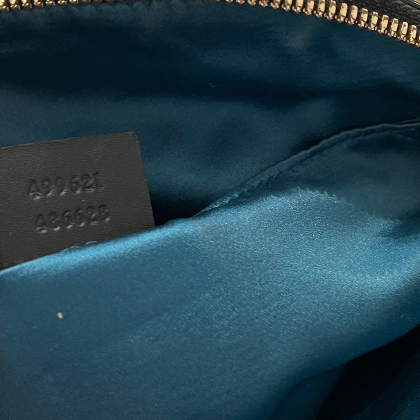 This is the authentic GUCCI Suede Patent Web GG Small Ophidia Dome Shoulder Bag in Hibiscus Red. This crossbody bag is crafted of red suede with black patent leather trim. The bag features an adjustable black patent leather shoulder strap and gold hardware. The wrap around zipper opens to a bright blue satin fabric interior with a patch pocket.
