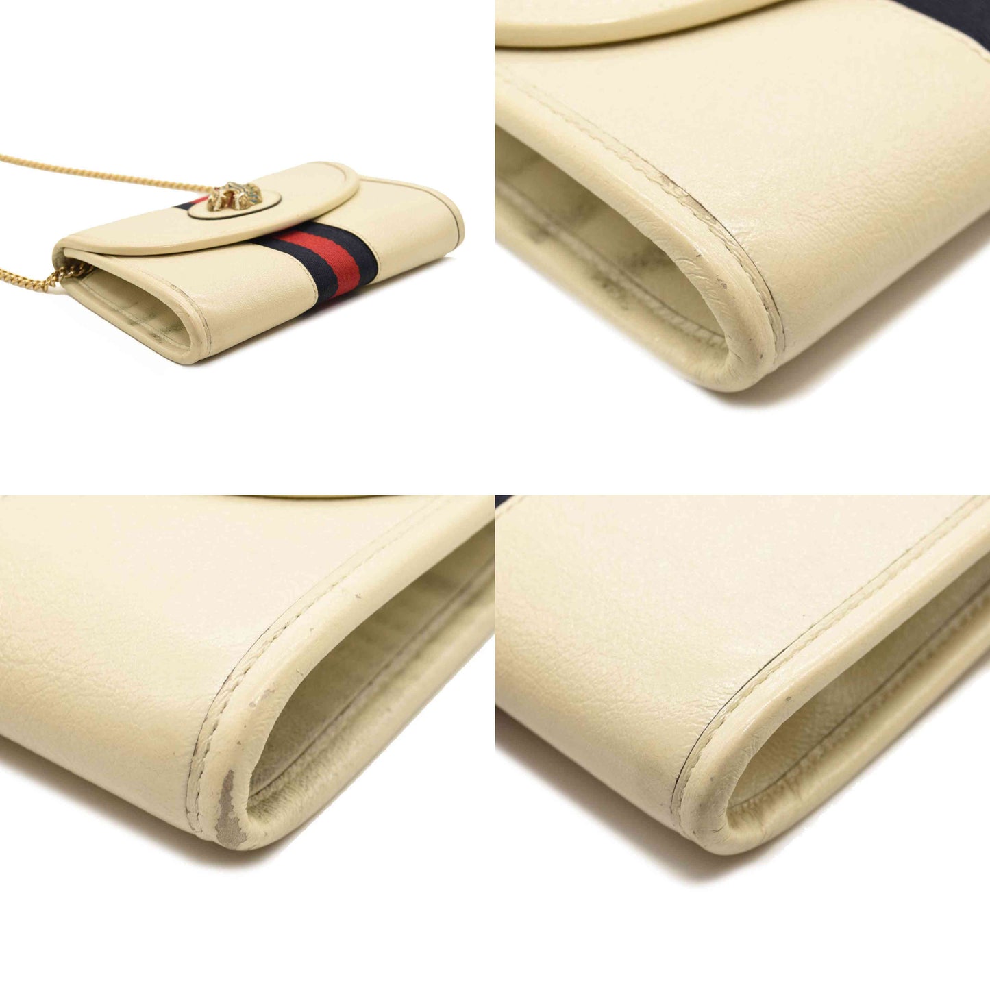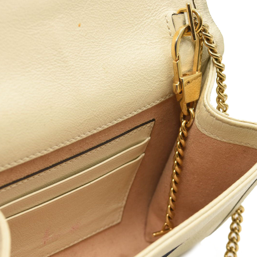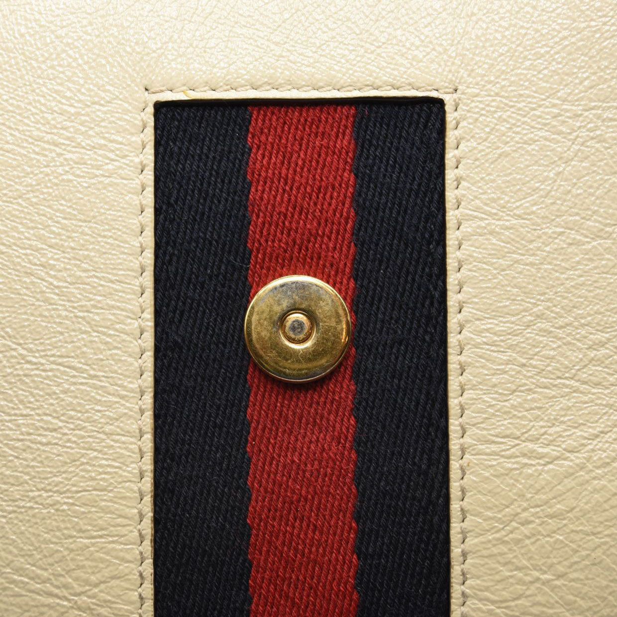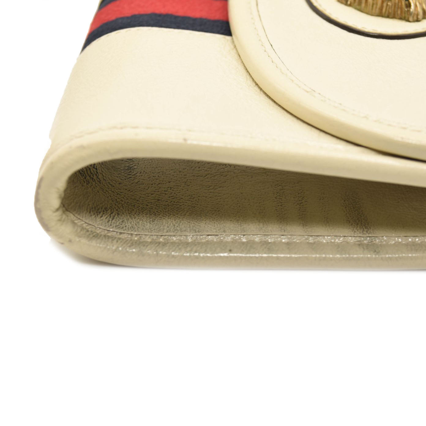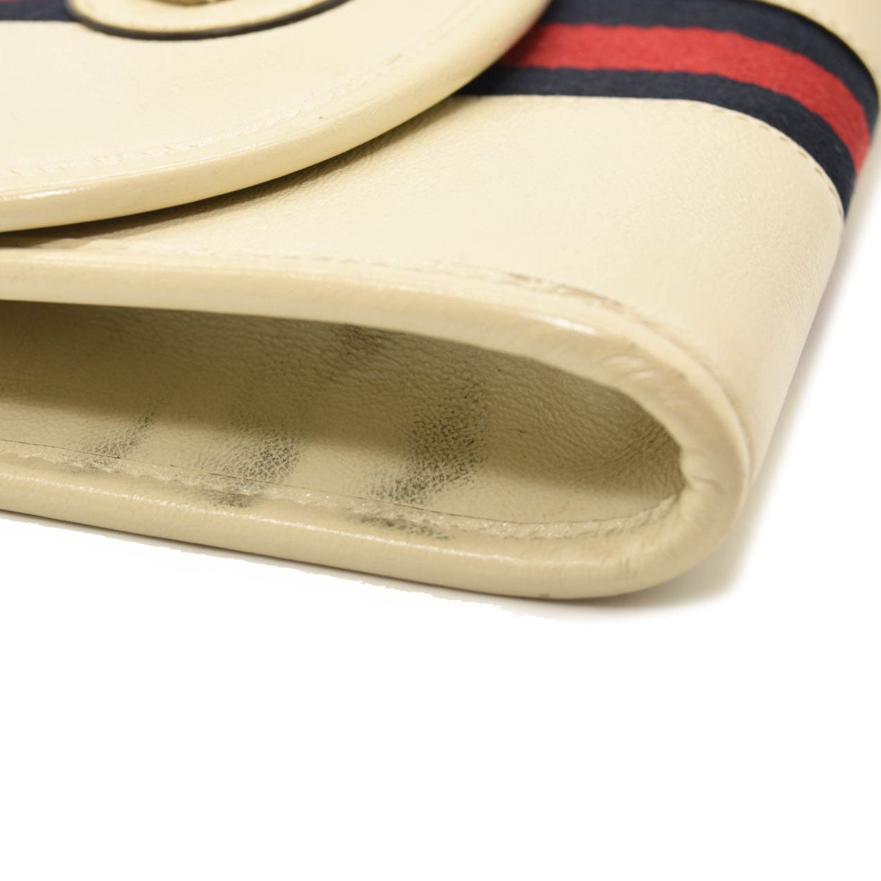 $1200 GUCCI Textured Calfskin Web Mini Rajah Slim Flap Shoulder Bag Mystic White