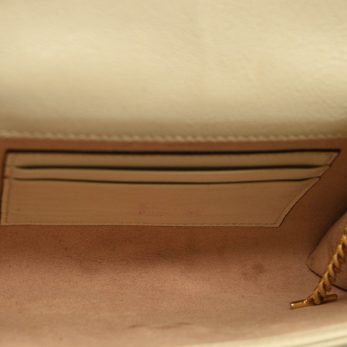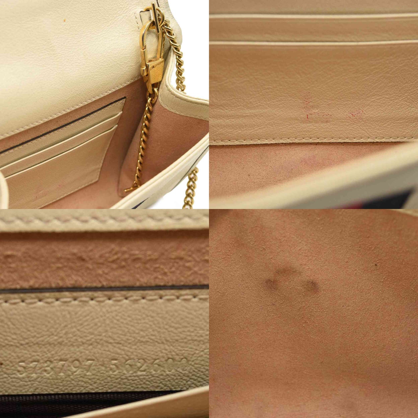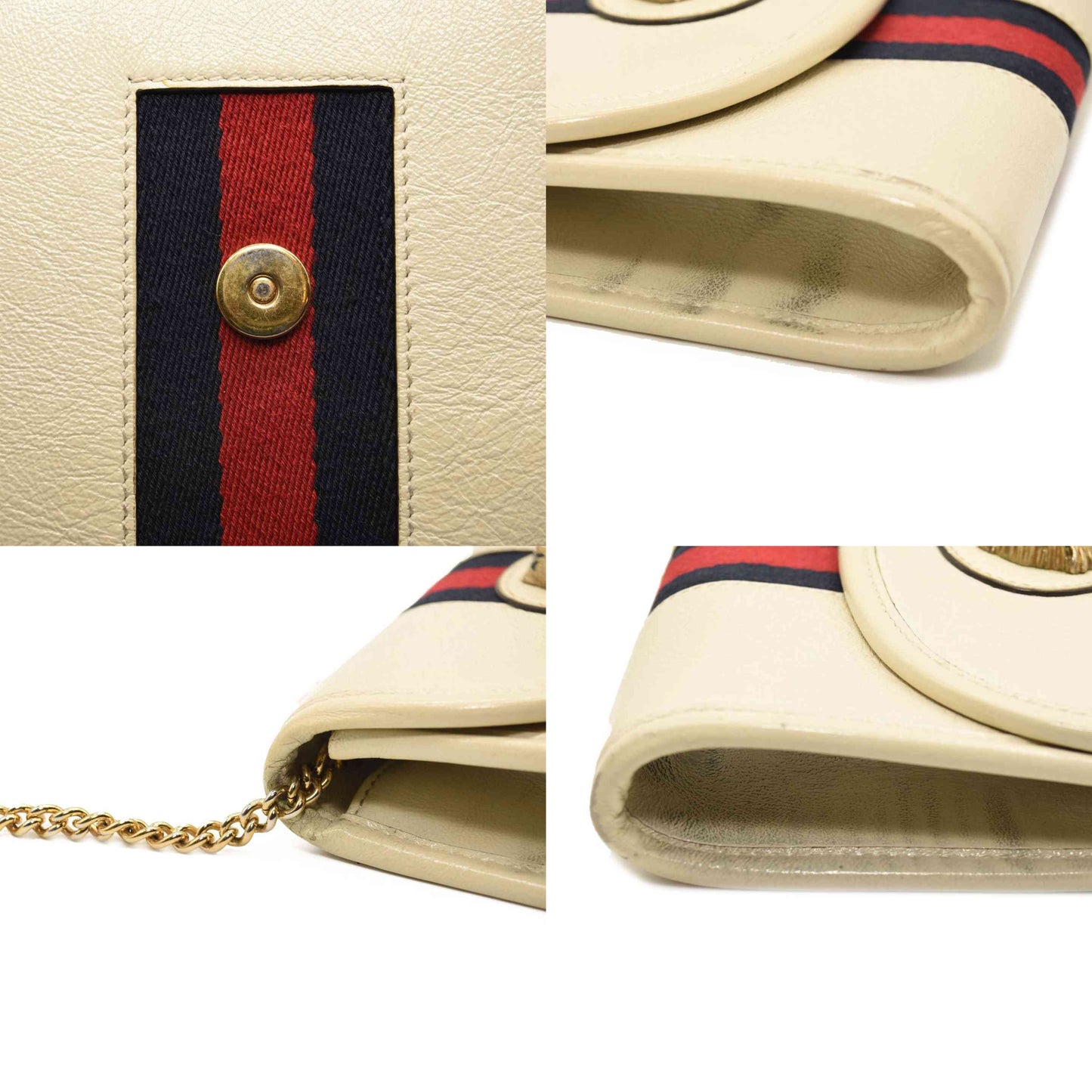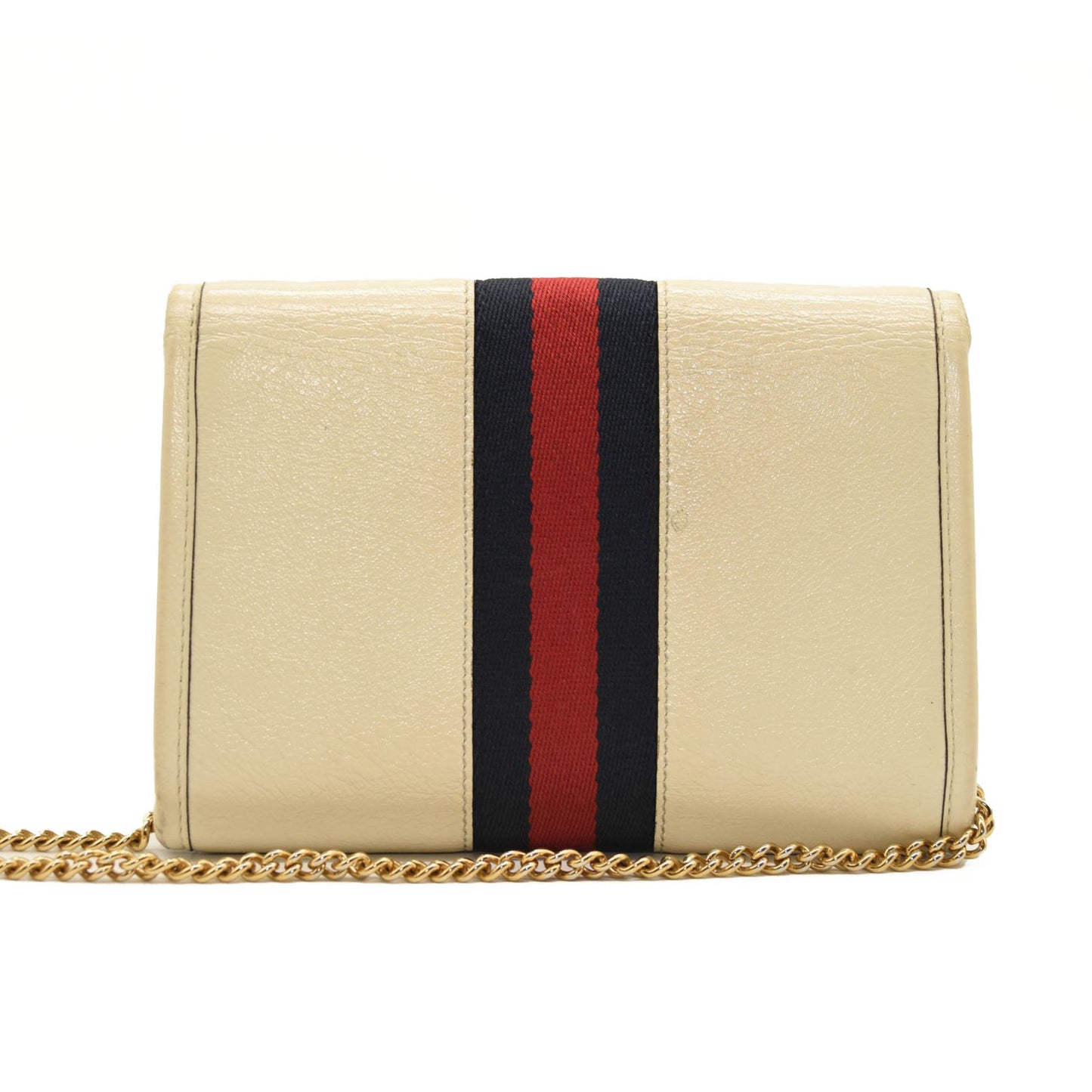 $1200 GUCCI Textured Calfskin Web Mini Rajah Slim Flap Shoulder Bag Mystic White