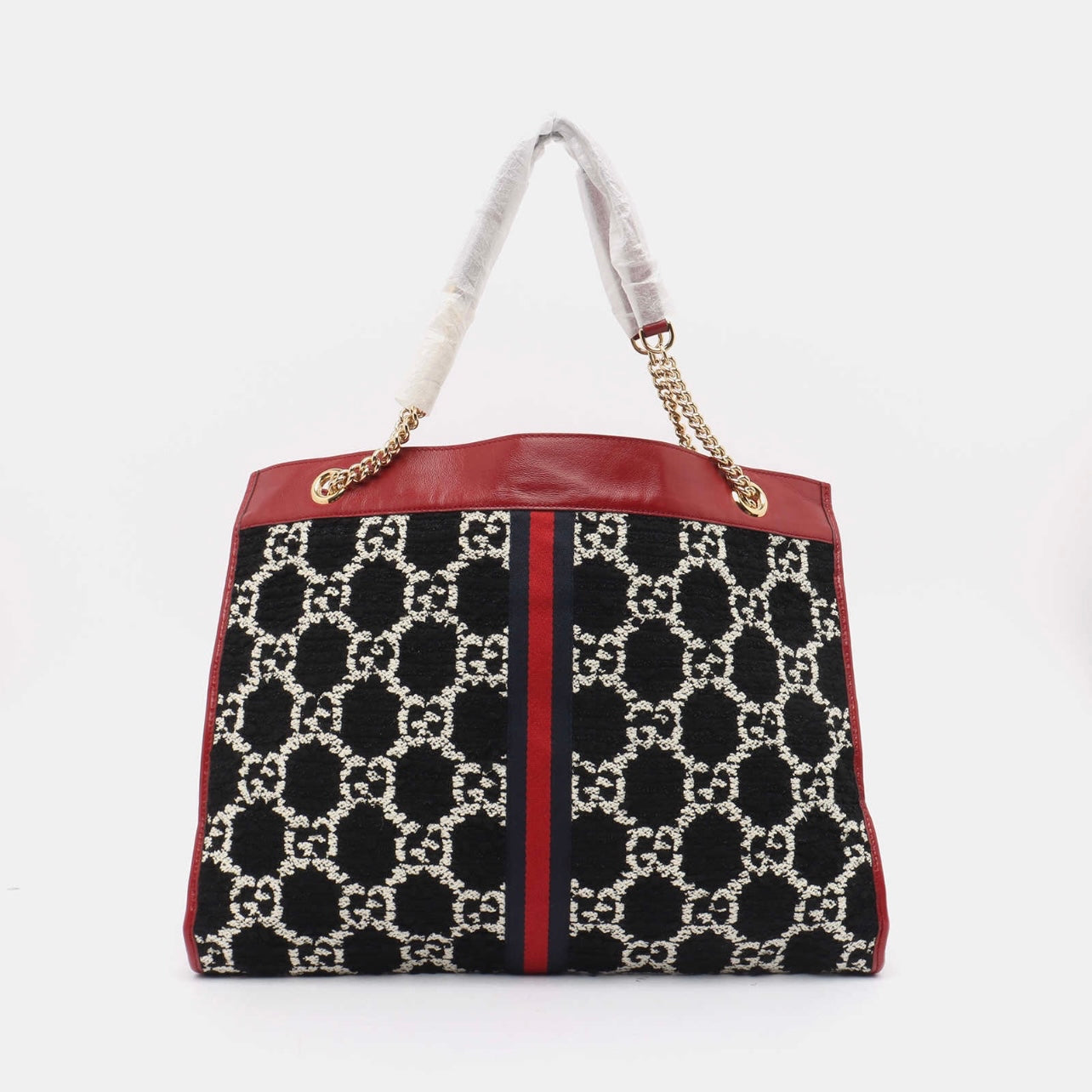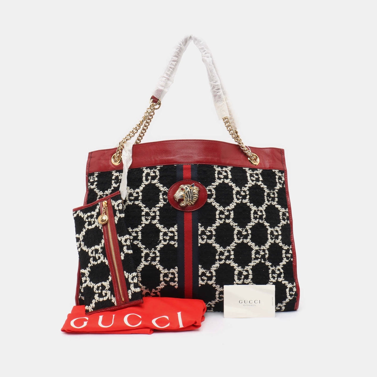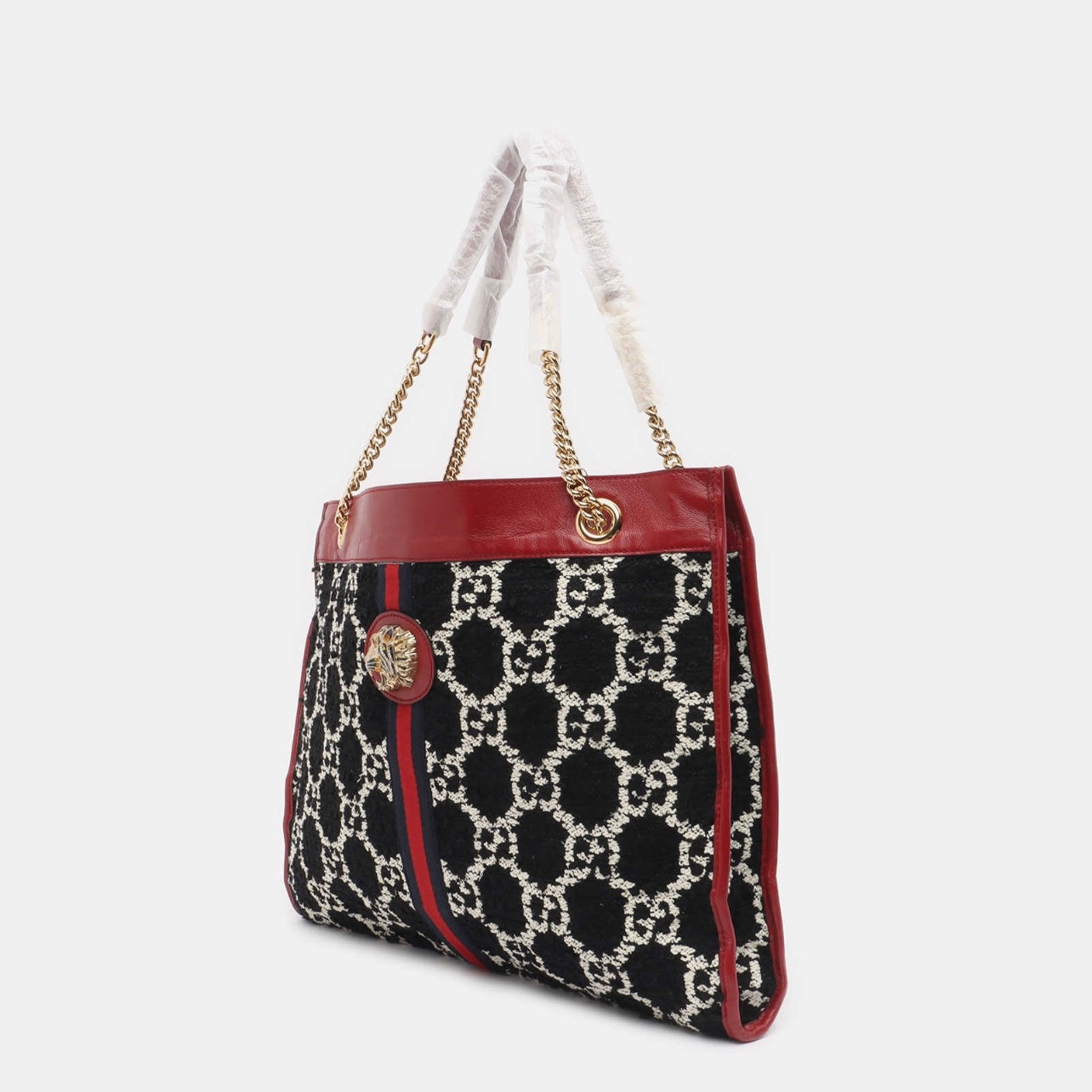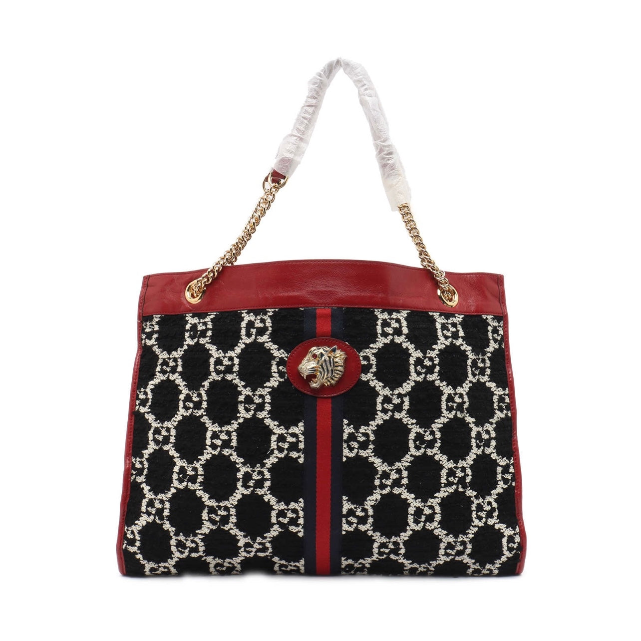 Gucci Tweed GG Monogram Large Rajah Chain Tote Romantic Cherry Black White
