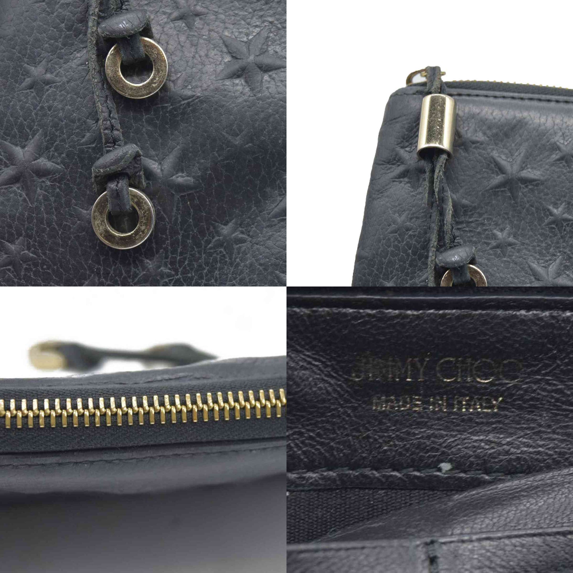 JIMMY CHOO Zip Around Leather Long Wallet Black with Star Studs