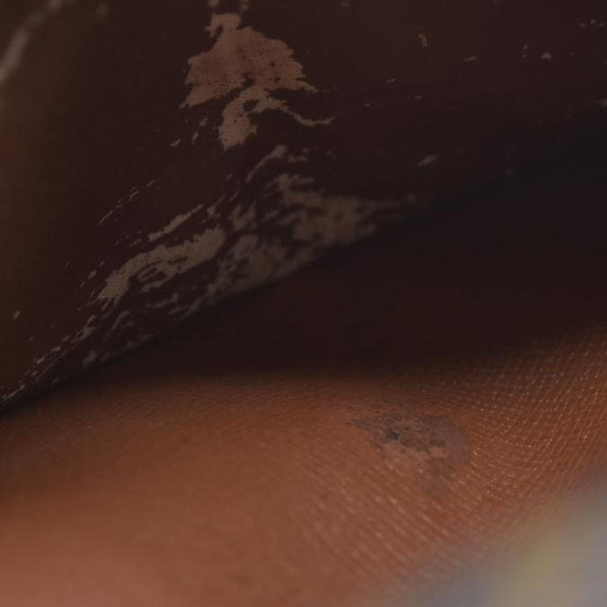 The exterior is rubbed with scratches. The metal fittings are oxidized. There are rubbed marks on the inside. The inside of cash compartment is peeled.