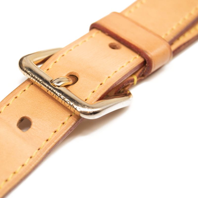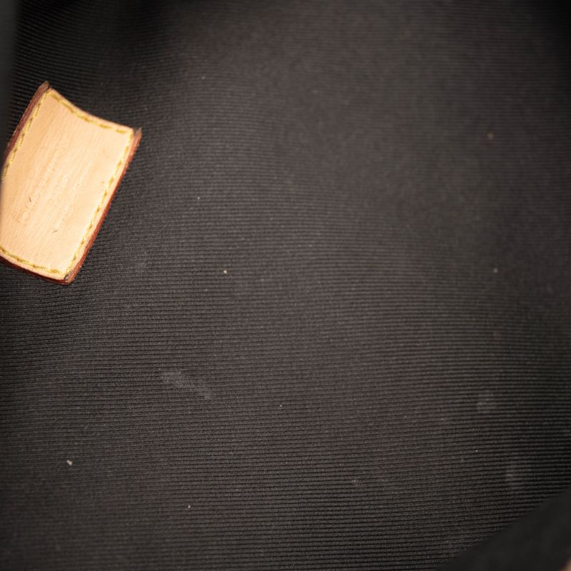 Slight patina of the leather. Minor water marks on the leater leather. Hairline scratches on the hardware. Surface wear on the interior. Stains on the interior. Tiny signs of peeling on the folds of the canvas where the bag bends to go around the waist