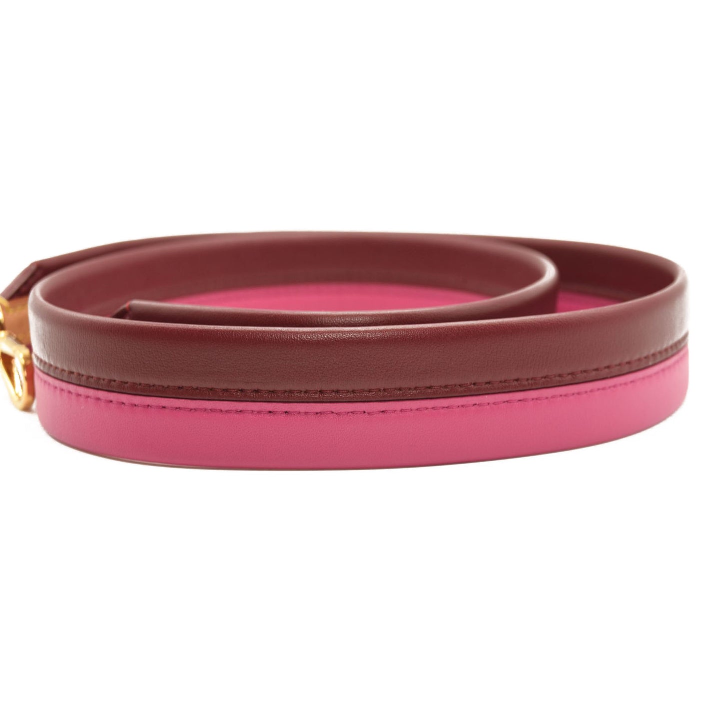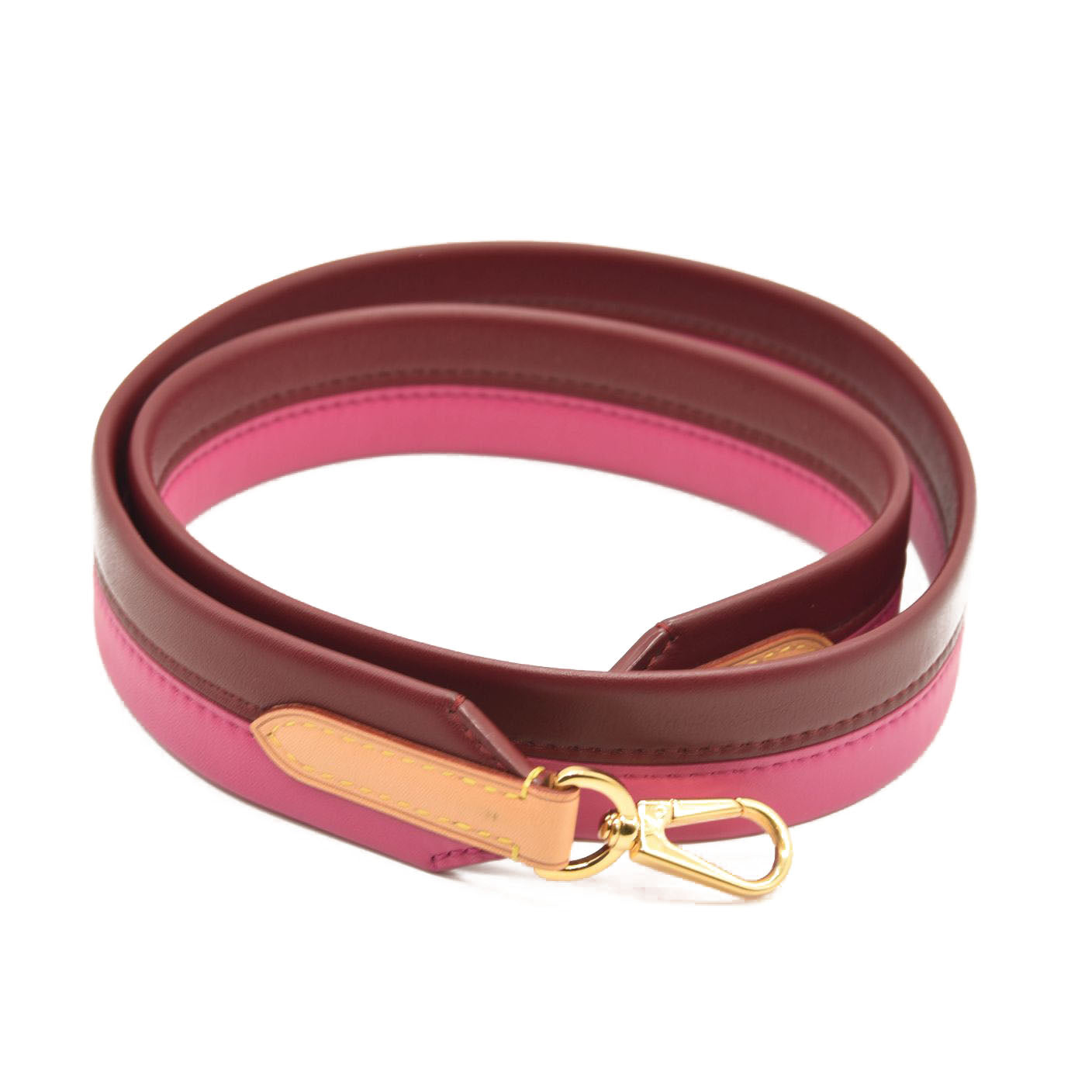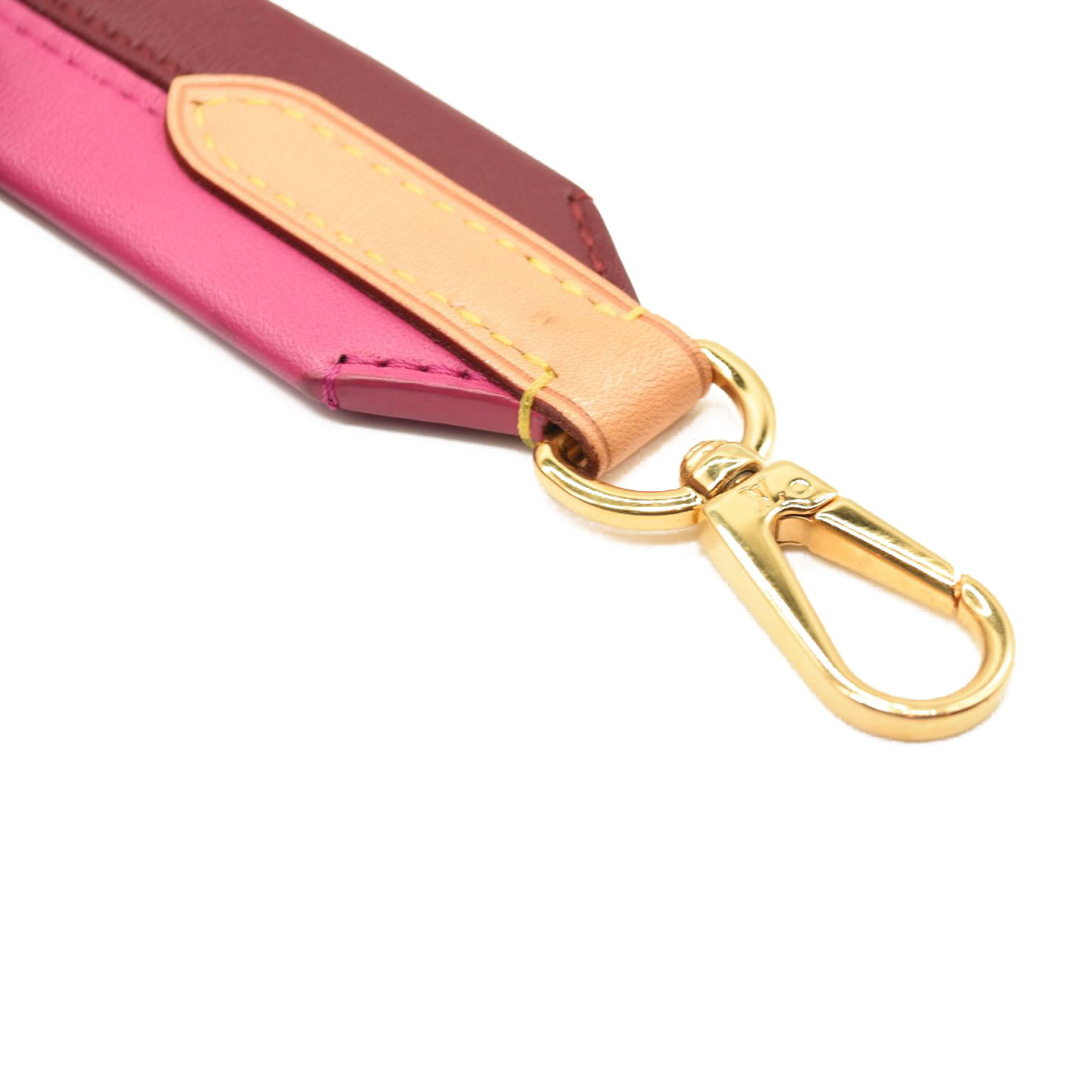 This is an authentic LOUIS VUITTON Calfskin Cluny BB Shoulder Strap. This stylish multicolor strap is crafted of Louis Vuitton calfskin leather. This strap features burgundy, pink, and natural vachetta leather with polished gold clasps at the ends to attach to any of your leather handbags. This is a beautiful strap that is as practical as it is chic from Louis Vuitton!
