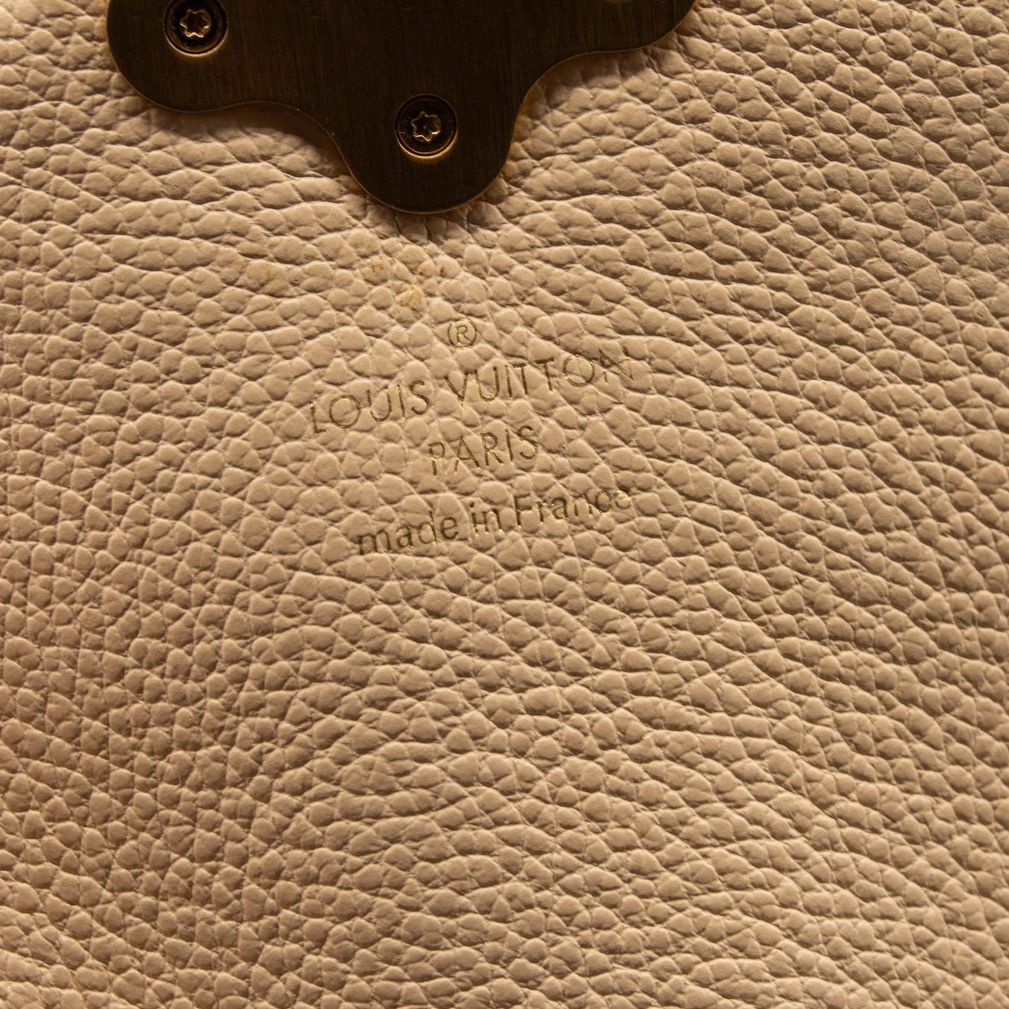 This is an authentic LOUIS VUITTON Damier Ebene Clapton Backpack in Creme. This chic backpack is crafted of Louis Vuitton damier coated canvas in brown. The bag features a beige grained calfskin leather crossover flap, a matching top handle, and adjustable leather shoulder straps with gold hardware. The bag opens with a gold press lock to a beige fabric interior with a patch pocket.