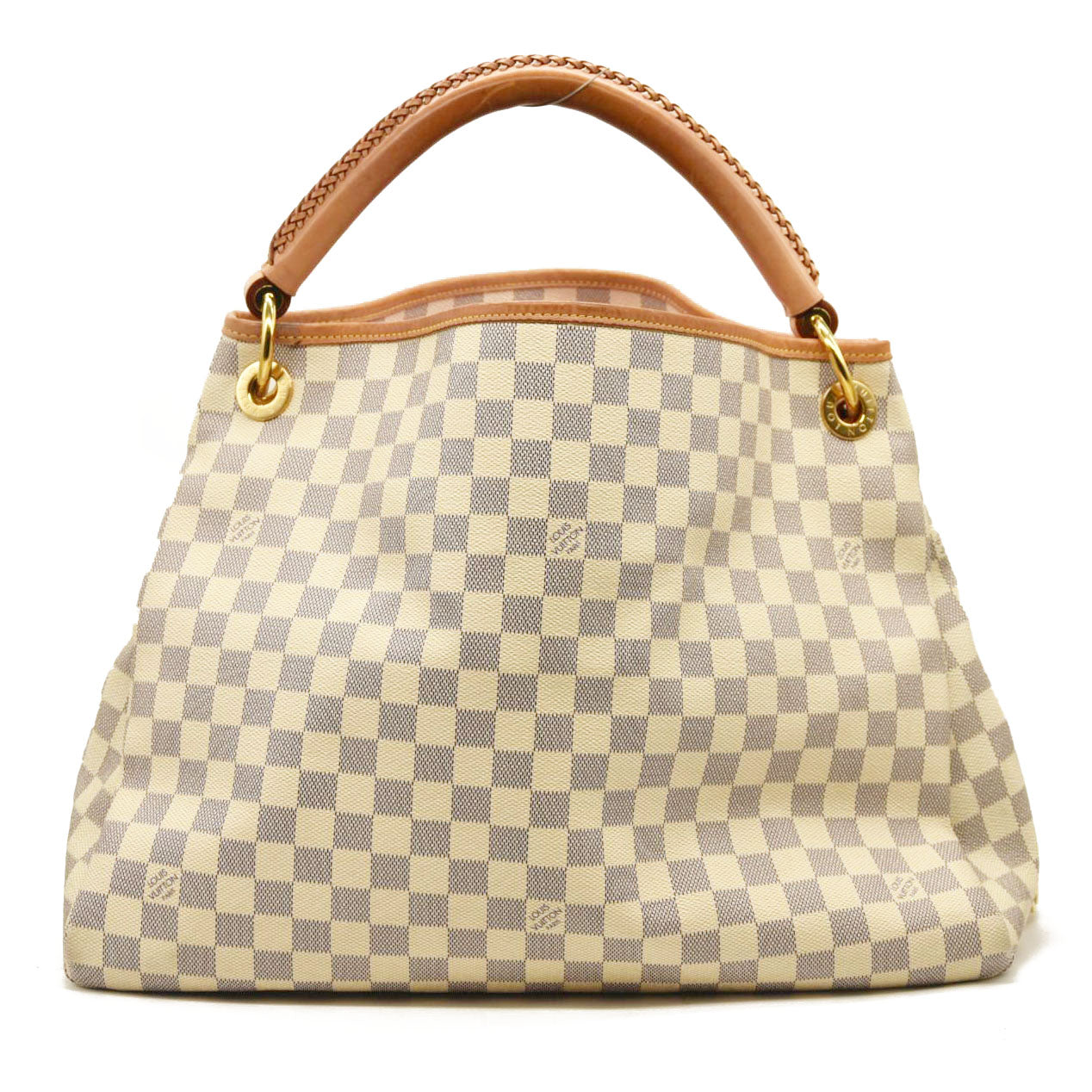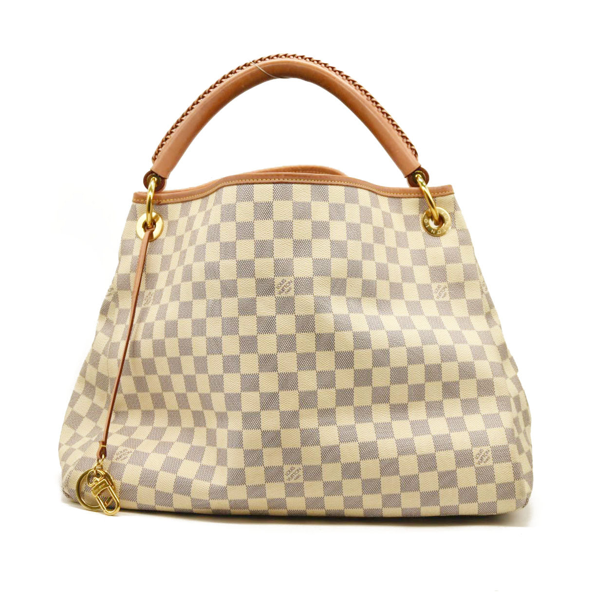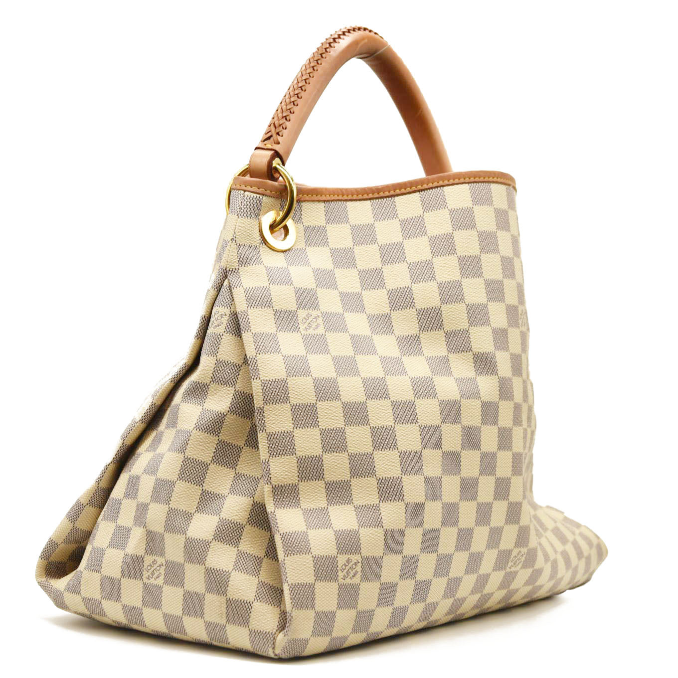 This is an authentic LOUIS VUITTON Damier Azur Artsy MM. This stylish and popular hand bag is crafted of damier check coated canvas in azur blue and white. The shoulder bag features a vachetta looping handle with a woven detail. The top is open to a beige microfiber interior with zipper and patch pockets. This is an deal bag for everyday use, from Louis Vuitton!