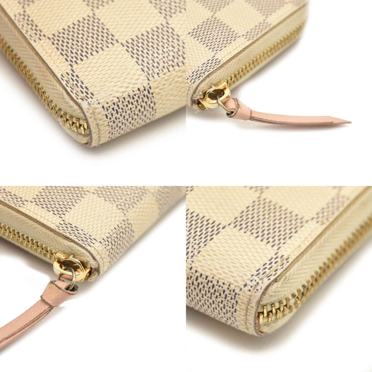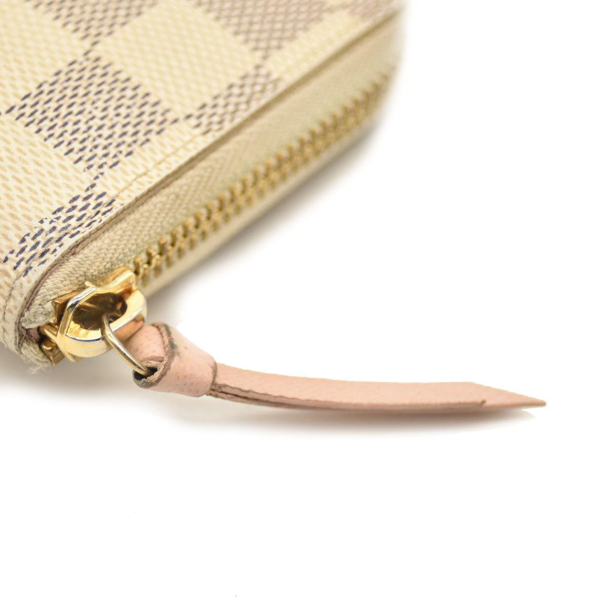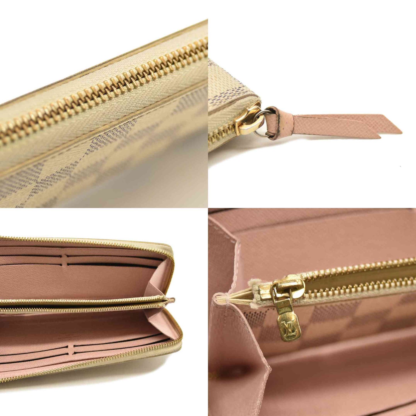 This is an authentic LOUIS VUITTON Damier Azur Clemence Wallet in Rose Ballerine. This stylish wallet is crafted of Damier checkered canvas in blue and white. The wrap-around brass zipper opens to a partitioned interior of ballerina pink cross-grain leather with card slots, patch pockets, and a central zipper compartment.