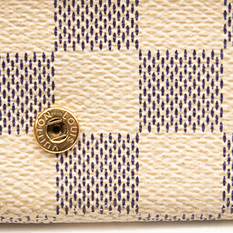 This is an authentic LOUIS VUITTON Damier Azur Multicles 4 Key Holder. This stylish key wallet is created of classic Louis Vuitton Damier checked coated canvas in blue and white. The flap unsnaps to a white cross-grain leather interior with 4 brass key clasps.