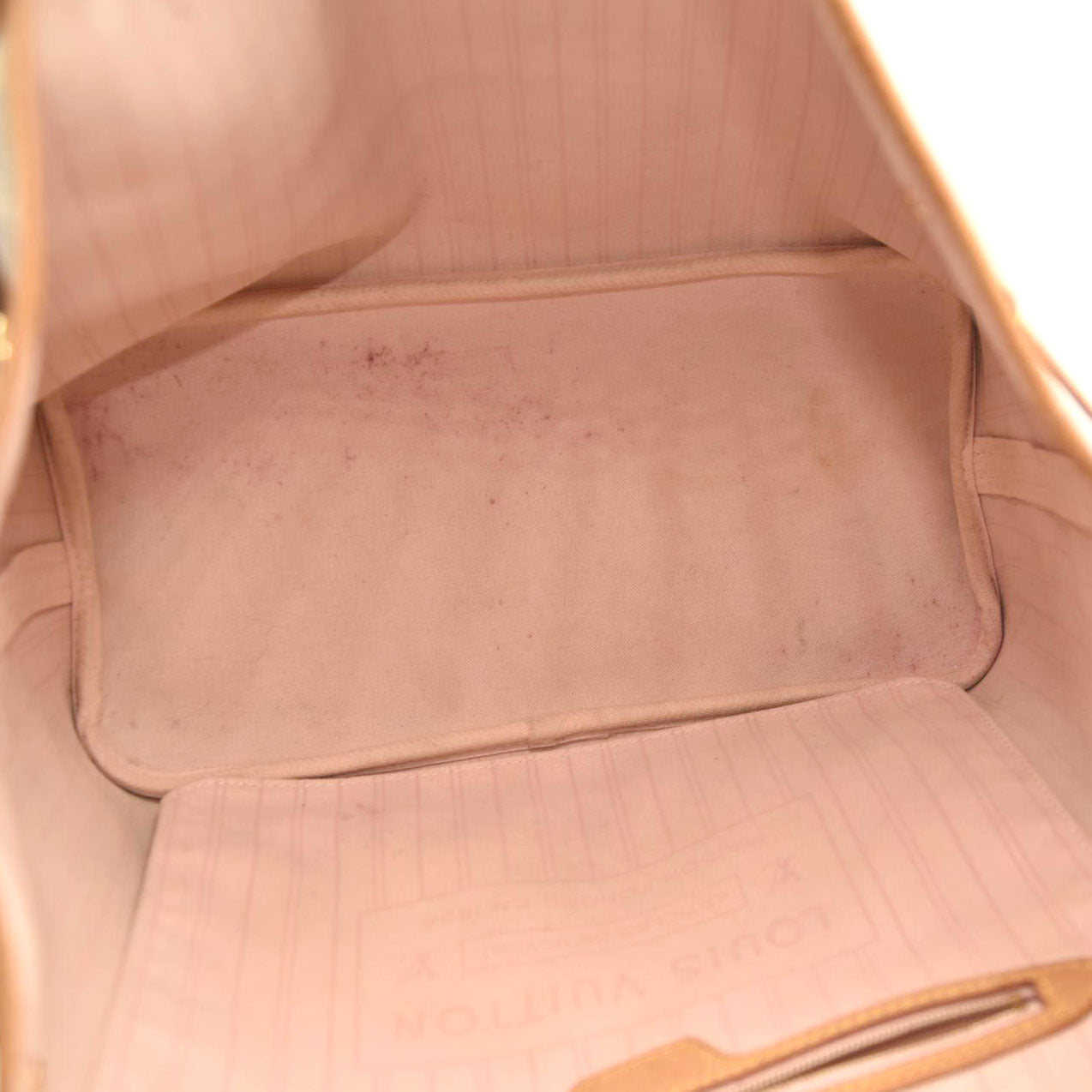 Exterior: Patina of vachetta, edge wear, liquid marks, faint corner wear