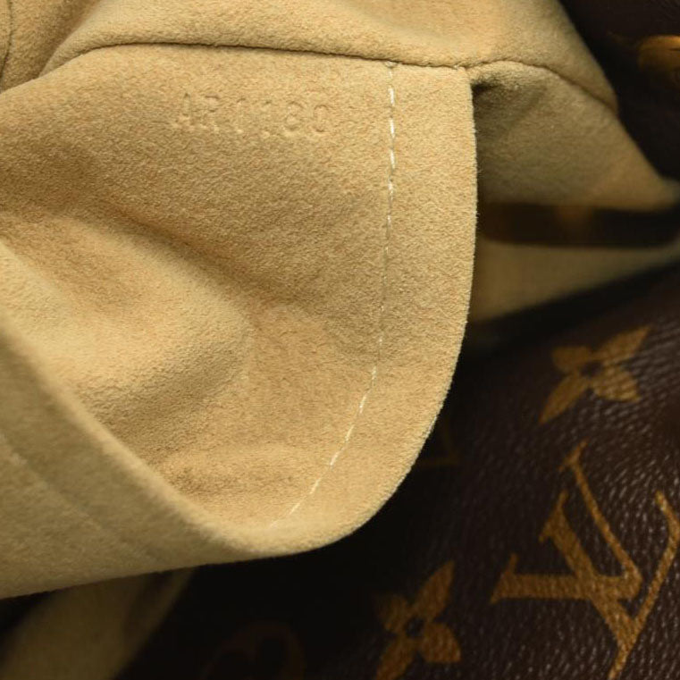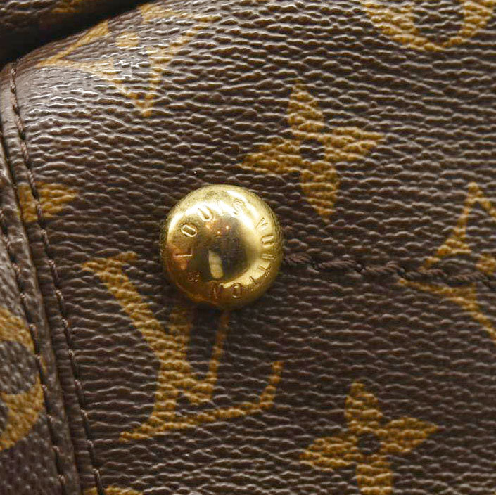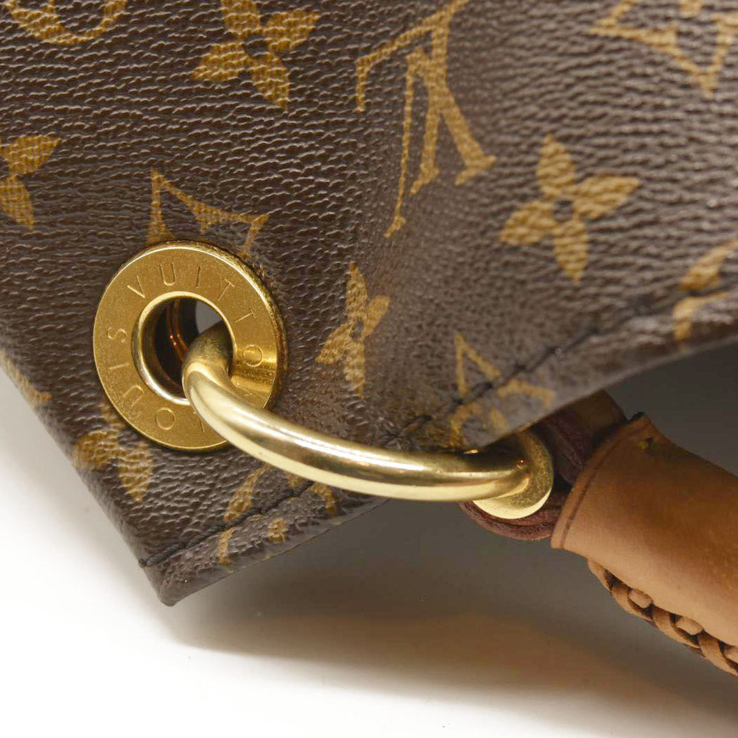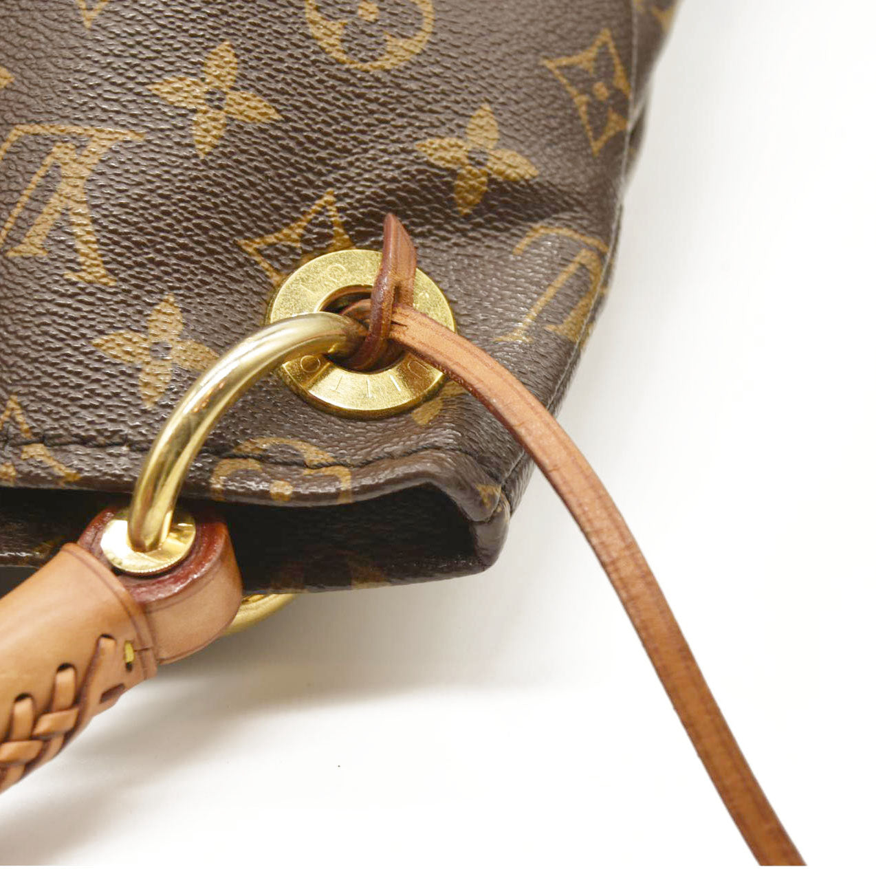 This is an authentic LOUIS VUITTON Monogram Artsy GM. This large shoulder bag is crafted of durable Louis Vuitton monogram toile canvas. The bag features a natural rolled vachetta cowhide leather shoulder strap with a sleek braided accent. The top is open to an ivory microfiber interior with a large zipper pocket and patch pockets.