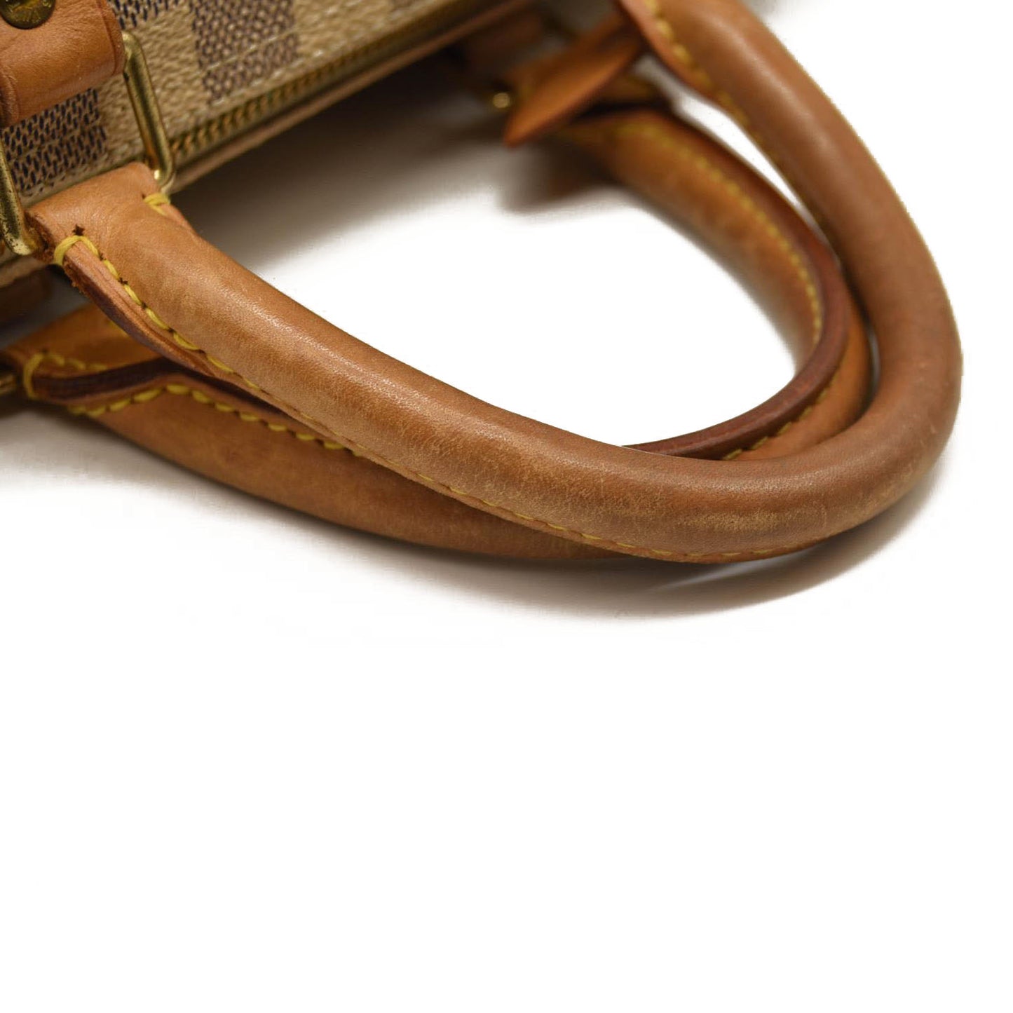 Handle: Patina of Vachetta, creases, liquid marks, darkening of leather