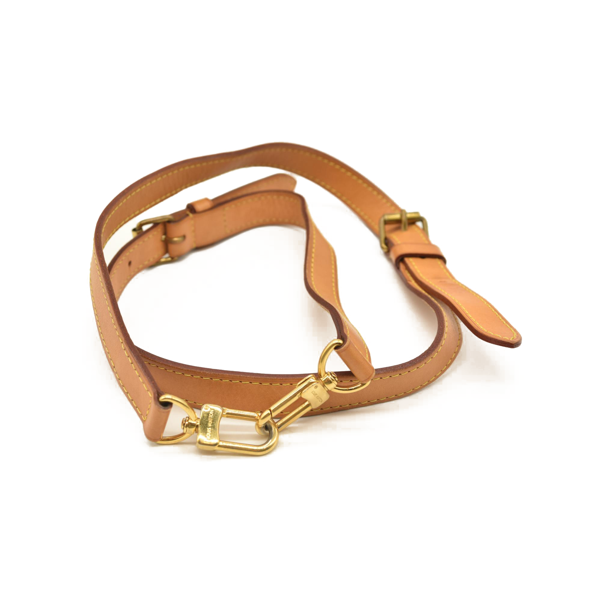 Strap: patina of vachetta, sizing marks, scuffs, marks, liquid marks, darkening