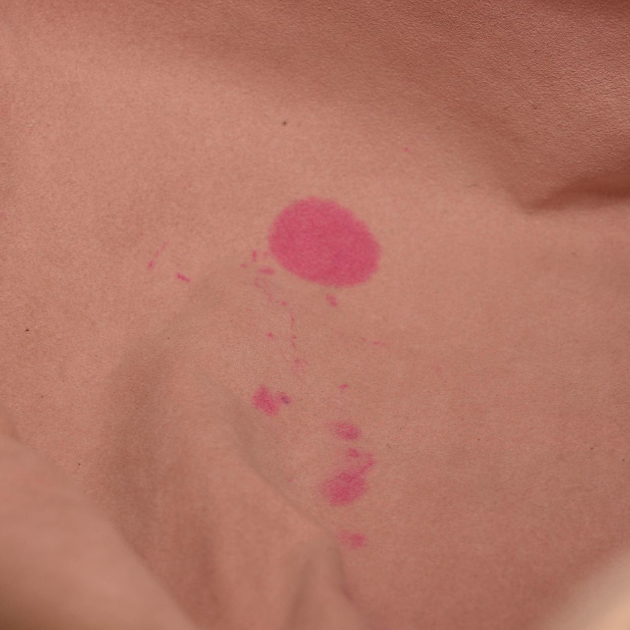 Exterior: Corner wear, surface wear, pink color wear on opening - color transfer