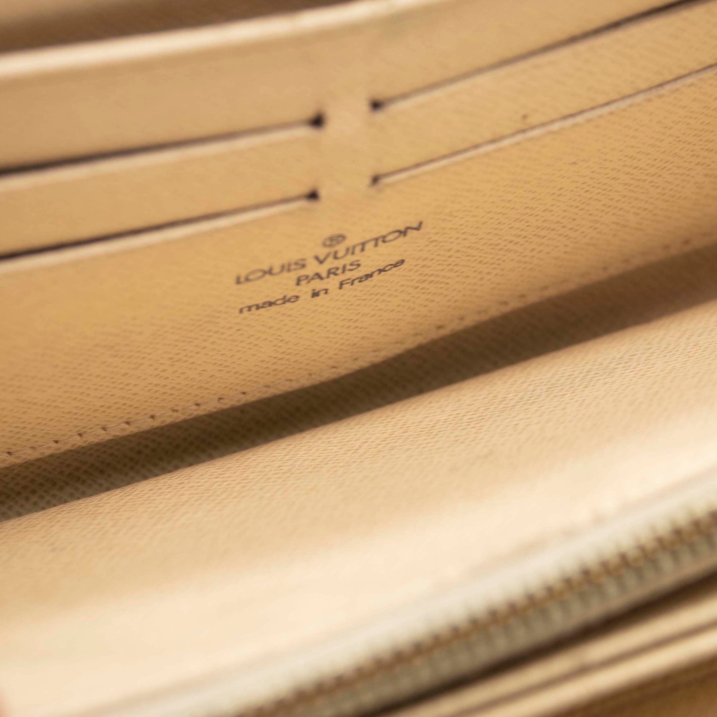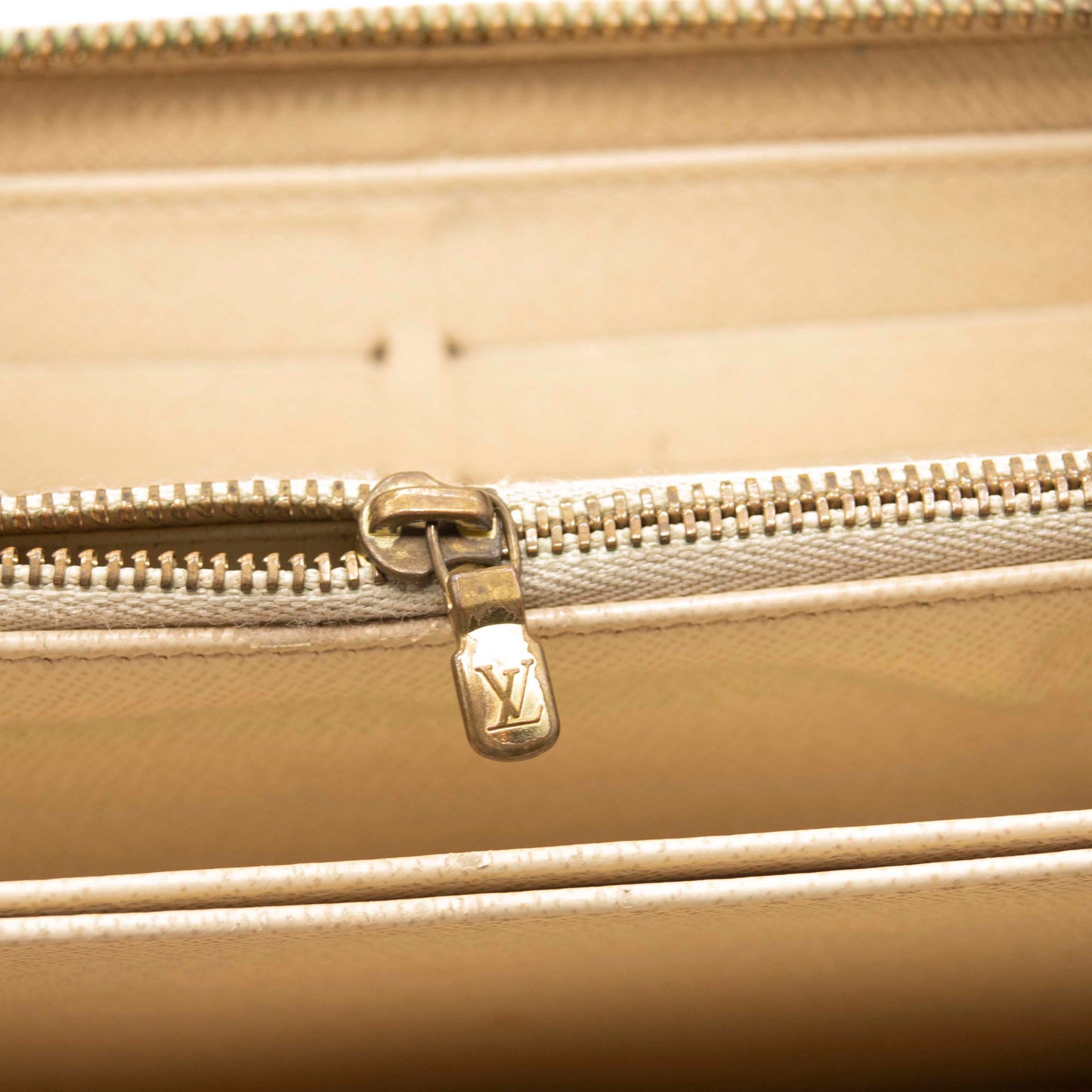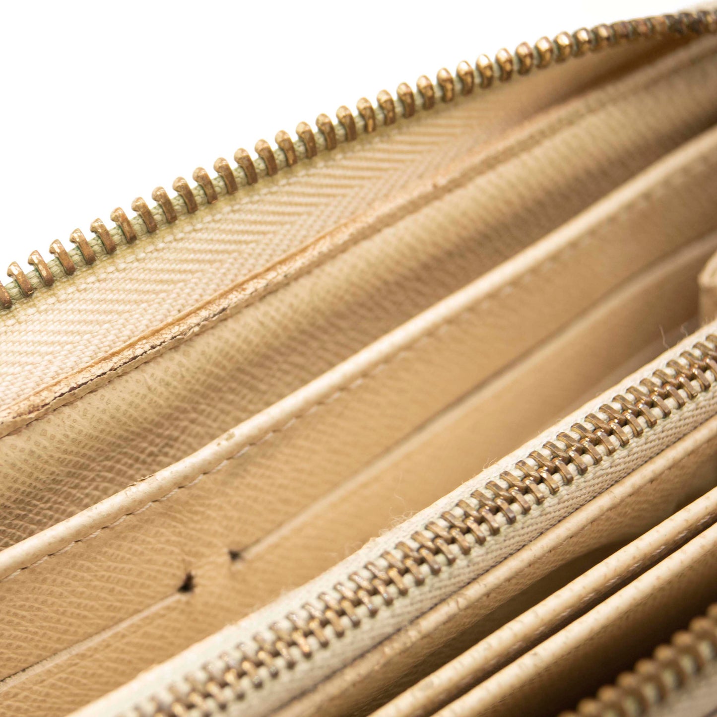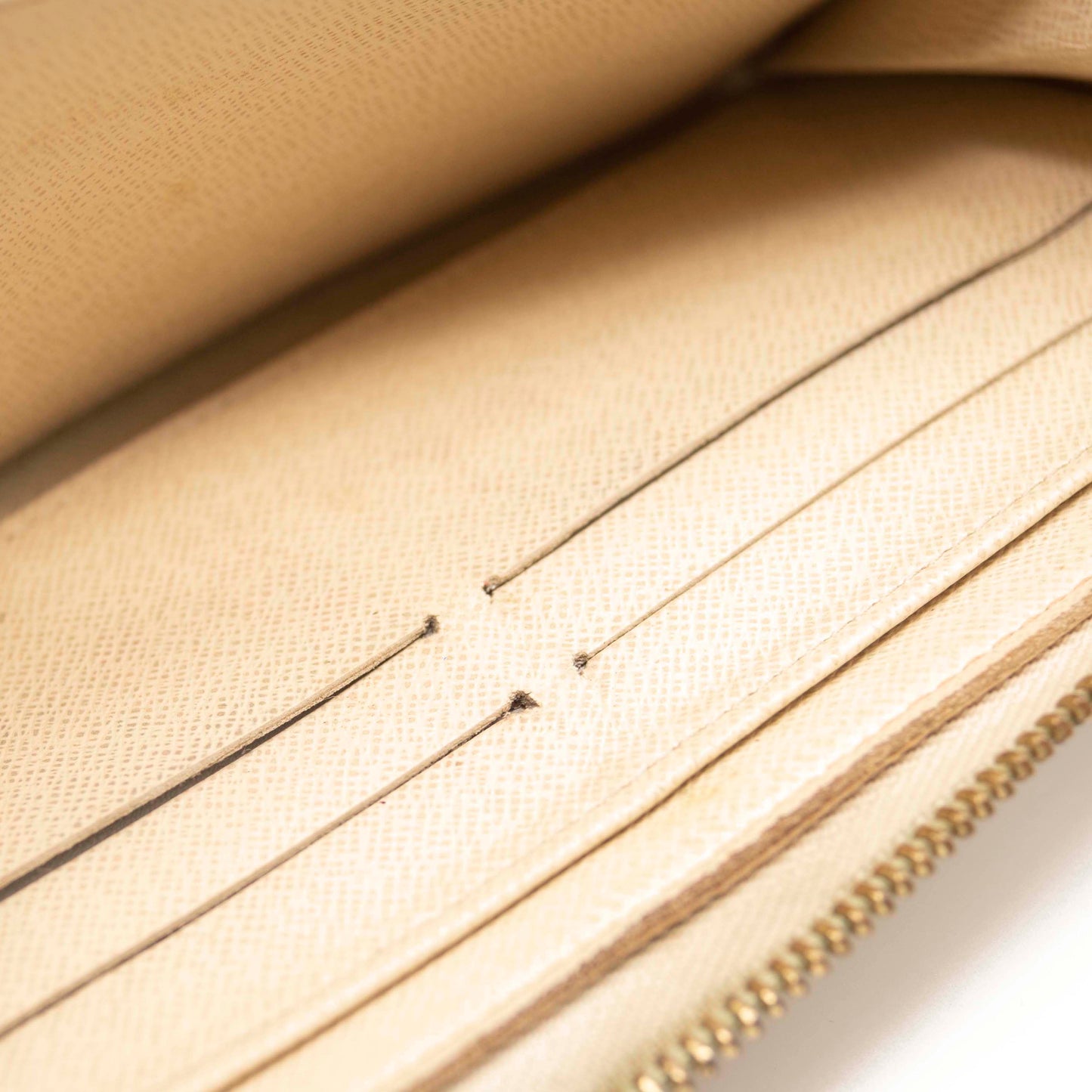 This is an authentic LOUIS VUITTON Damier Azur Zippy Wallet. This wallet is crafted of Louis Vuitton's signature Damier check canvas in white. The wallet features a polished gold wrap-around zipper that opens to a partitioned cream cross-grain leather interior with card slots, patch pockets, and a zipper compartment.