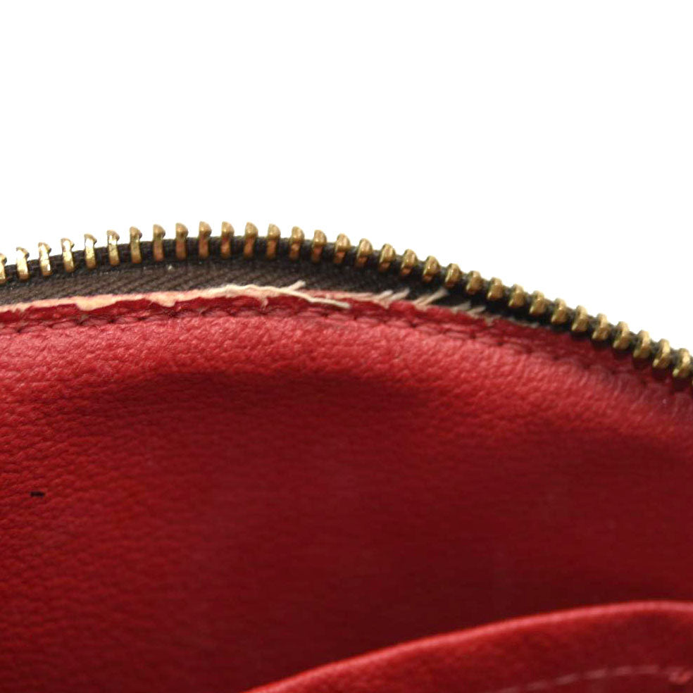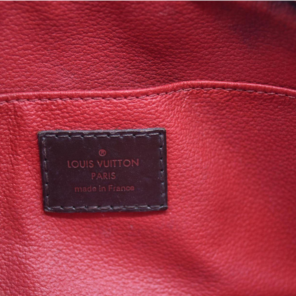 This is an authentic LOUIS VUITTON Damier Ebene Cosmetic Pouch. This chic cosmetic case is crafted of Damier checkered coated canvas in brown. The bag unzips to a red leather-like interior with a patch pocket.