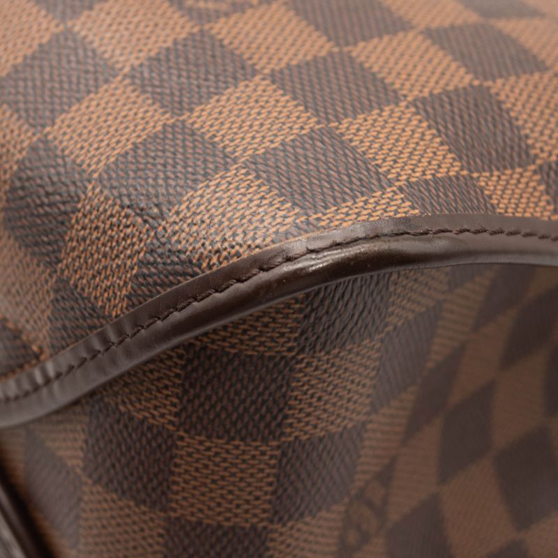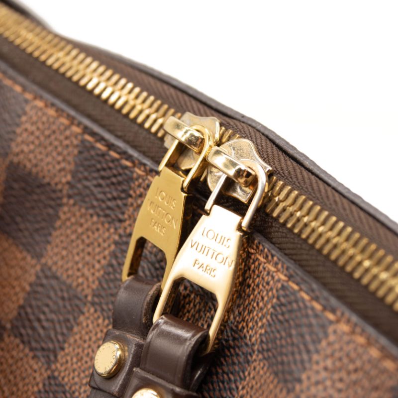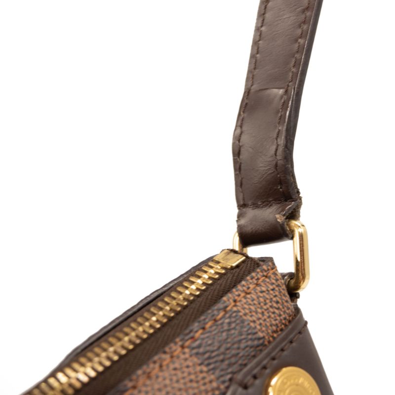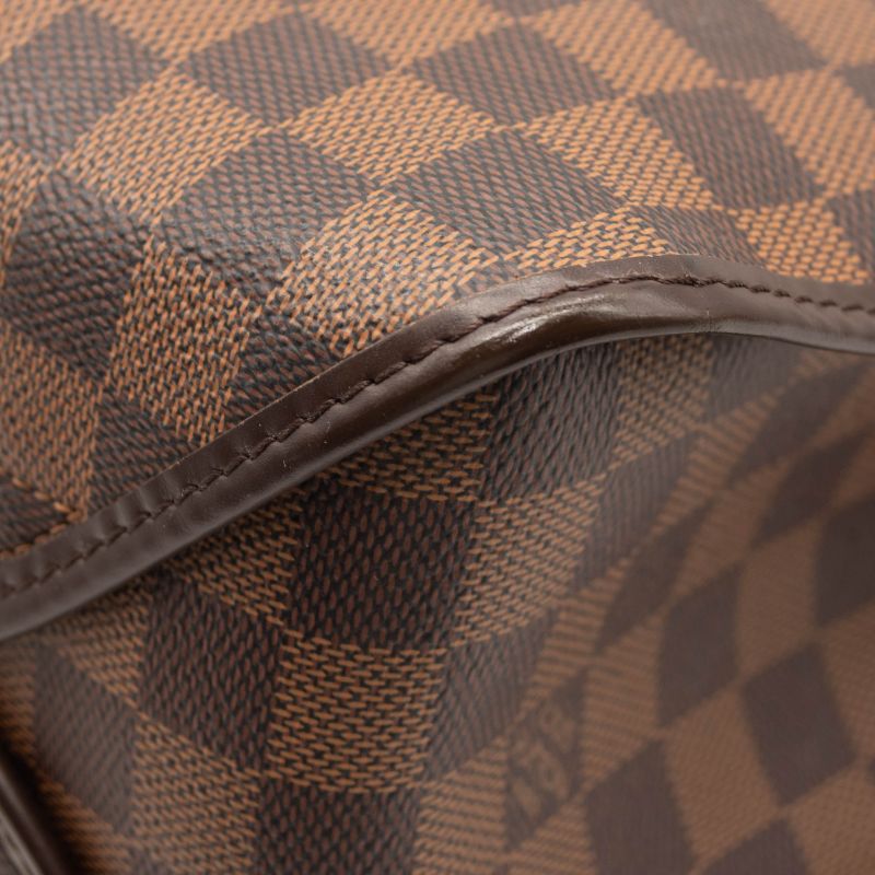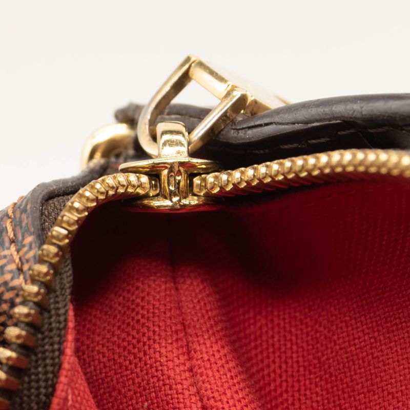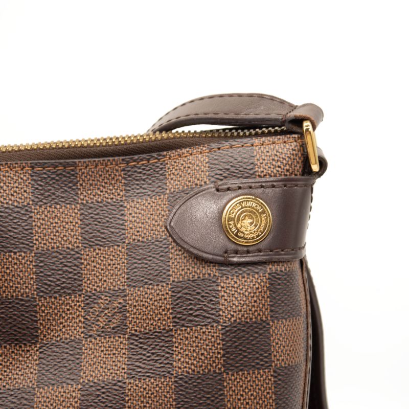 This is an authentic LOUIS VUITTON Damier Ebene Duomo Messenger. This stylish shoulder bag is crafted of Louis Vuitton's signature Damier checkered canvas in brown. This shoulder bag features an adjustable dark chocolate brown leather shoulder strap, matching trim, and polished brass hardware. The top zipper opens to a red fabric interior with pockets.