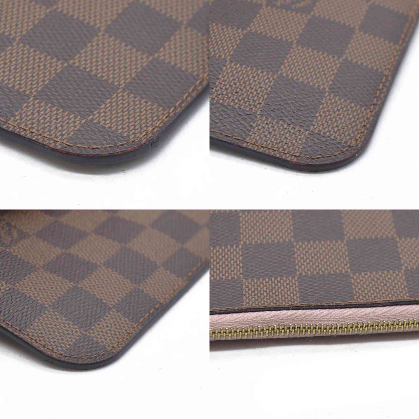 Louis Vuitton Damier Ebene Neverfull MM Pochette Rose Ballerine Wristlet