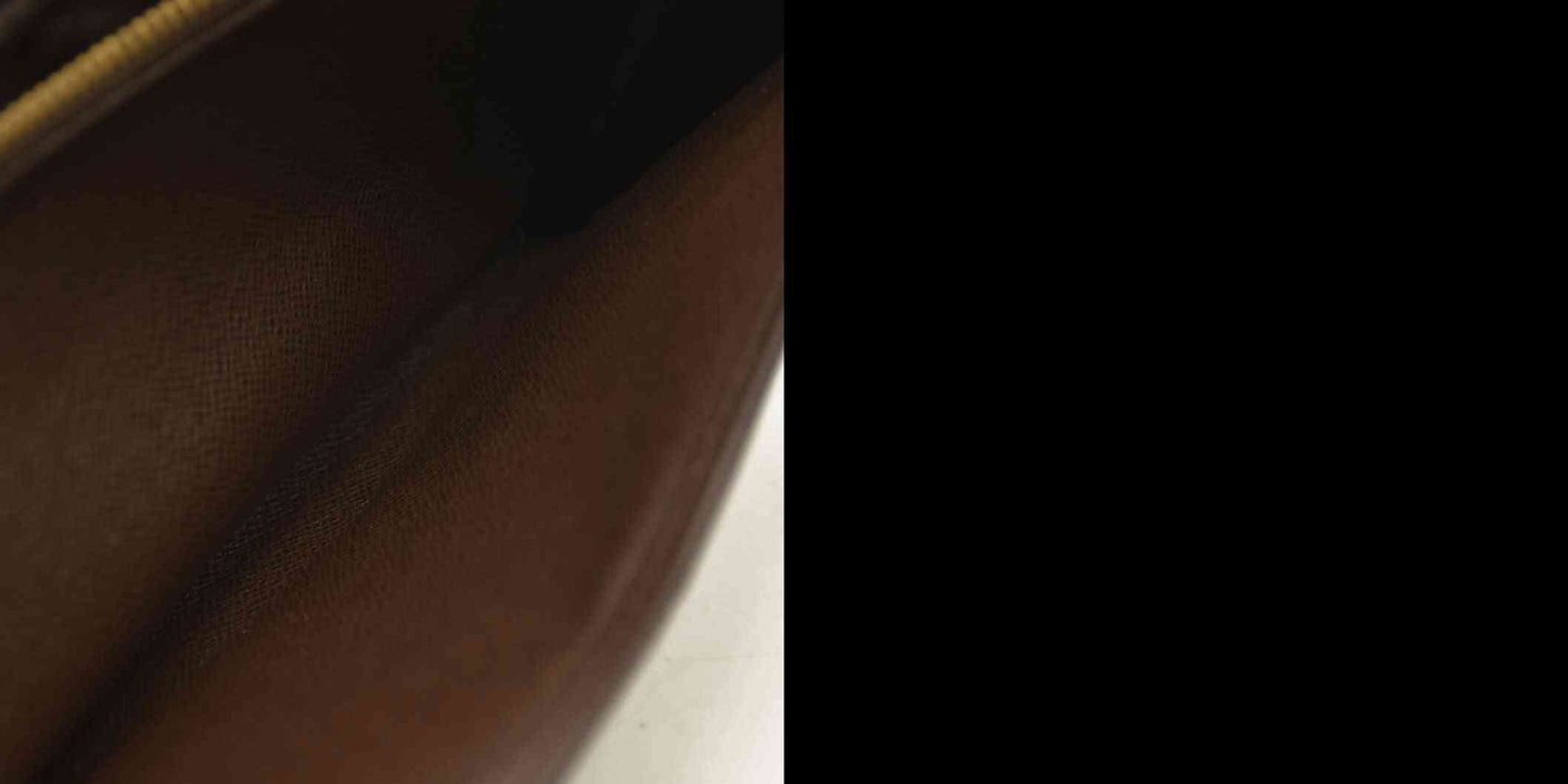 The exterior is rubbed with scratches. There are loose stitches around the folding area. There are rubbed marks on the inside.