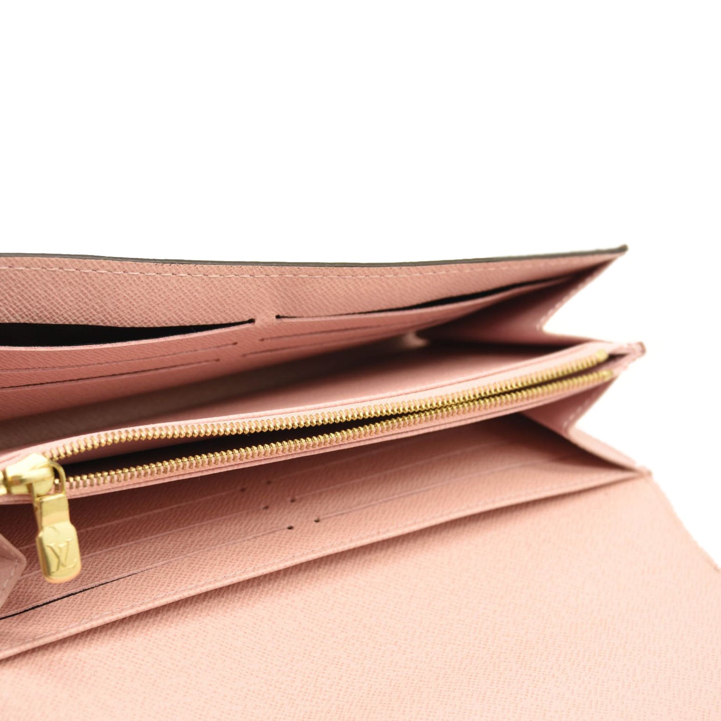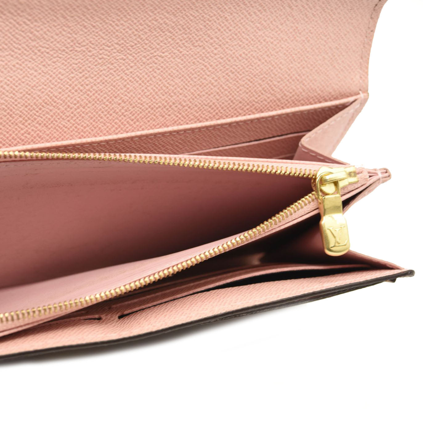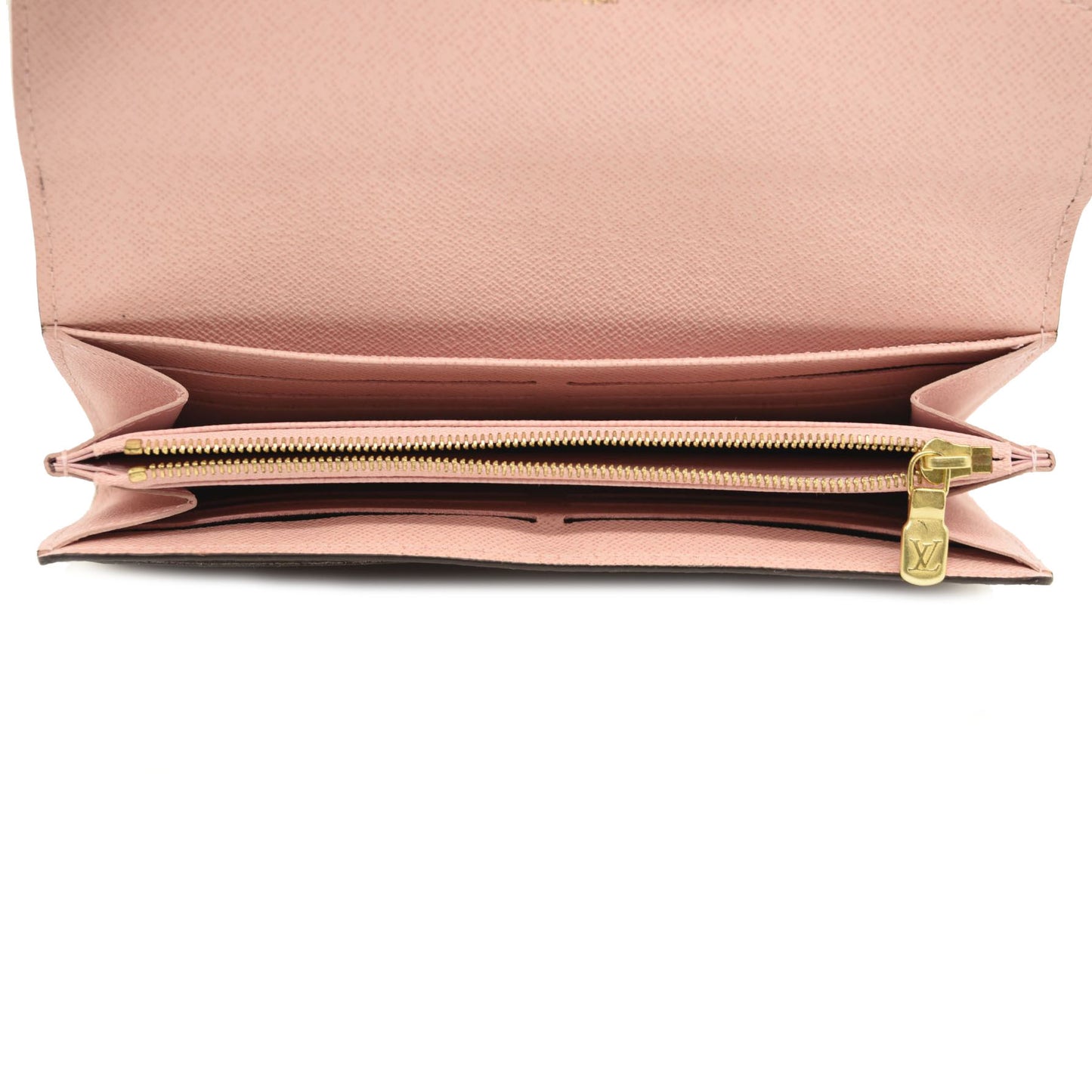 $720 LOUIS VUITTON Damier Ebene Sarah Wallet NM Rose Ballerine
