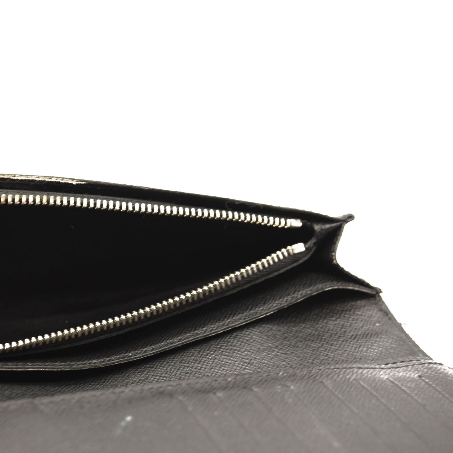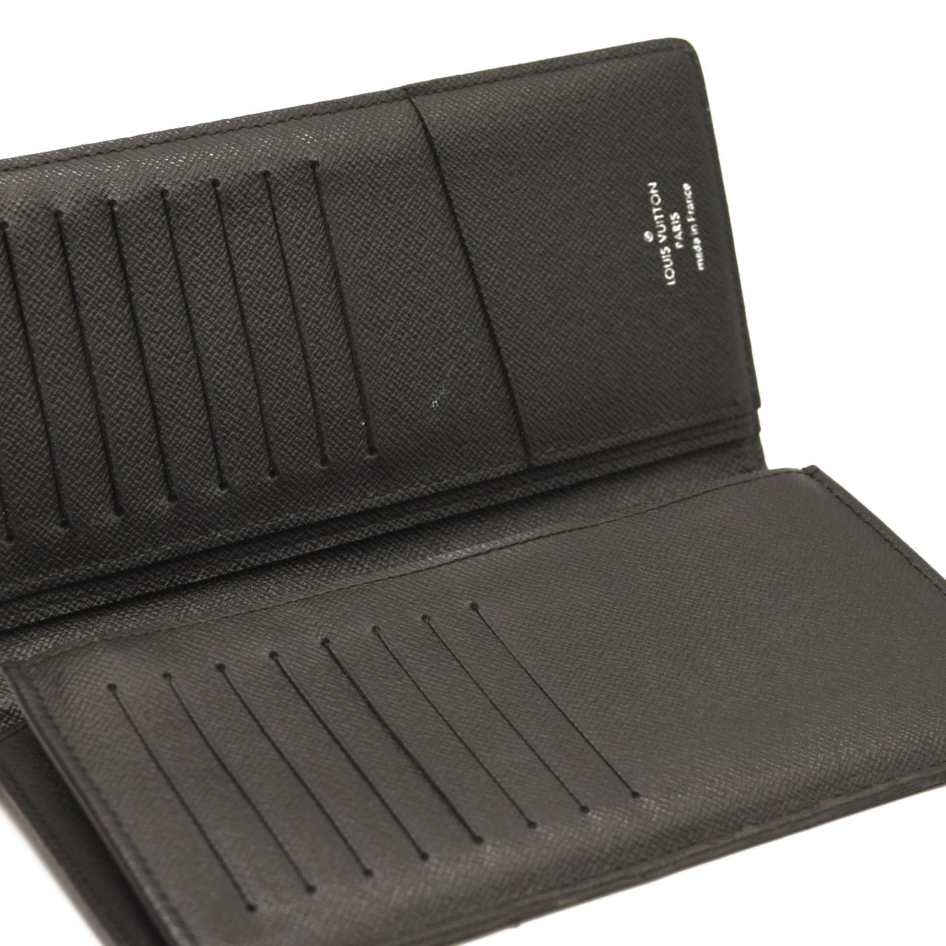This is an authentic LOUIS VUITTON Damier Graphite Brazza Wallet. This stylish wallet is crafted of damier patterned coated canvas in grey. The wallet is a simple fold that opens to an interior of graphite crossgrain leather in black with polished silver hardware, card slots, patch pockets and a zipper compartment.