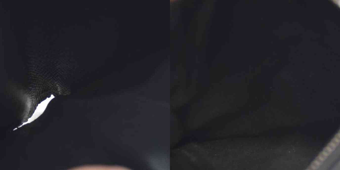 The exterior is rubbed with scratches. There are loose stitches around the folding area. There are rubbed marks on the inside. The leather part has cracks.