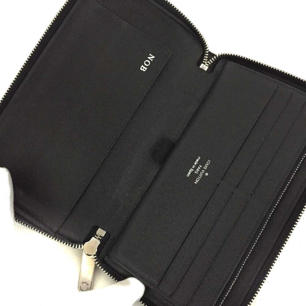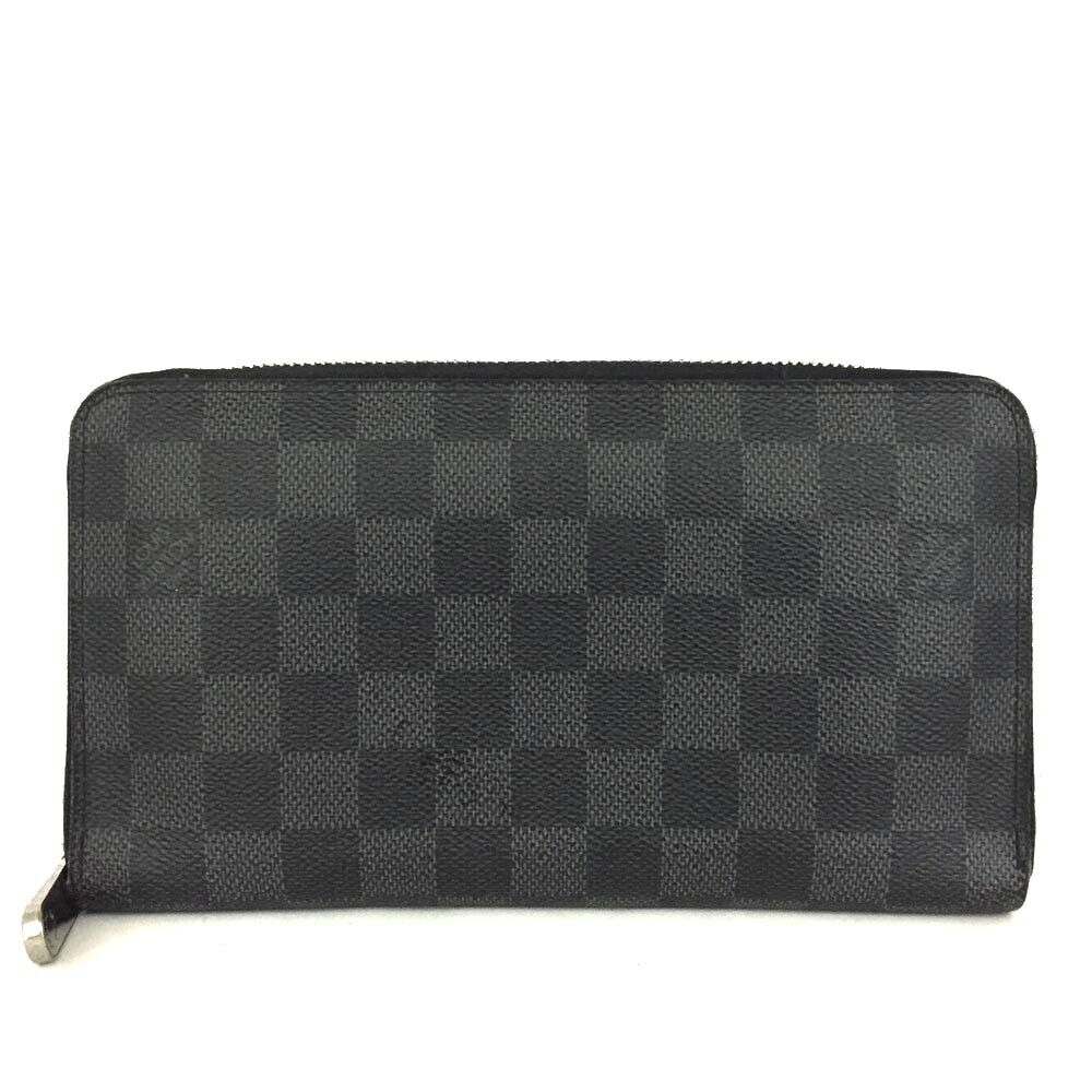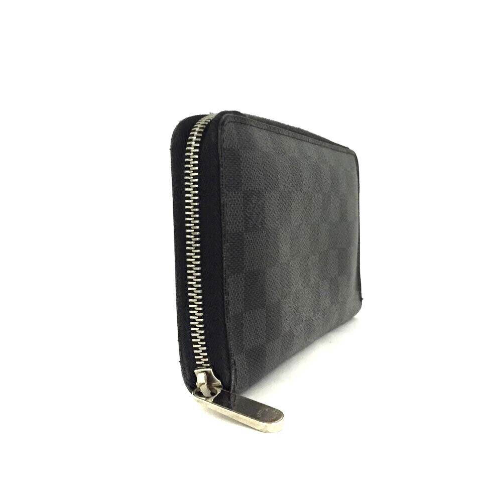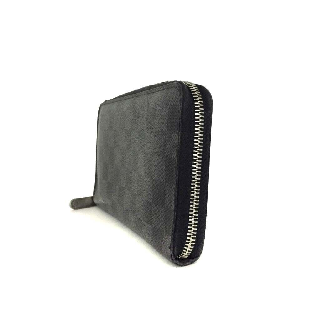 This is an authentic LOUIS VUITTON Damier Graphite Zippy Wallet. This stylish wallet is crafted of Louis Vuitton signature checkerboard coated canvas in grey. The polished silver wrap-around zipper opens to a black cross-grain leather interior with a card slot panel, a full patch pocket on one side, and a full zipper compartment.