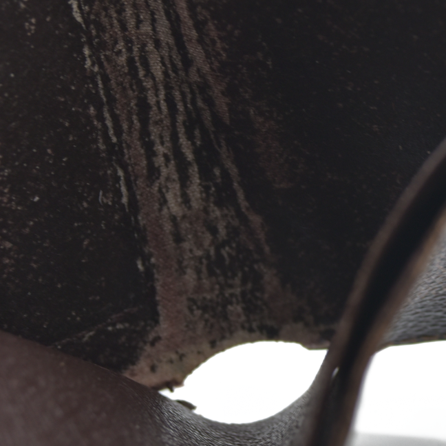 The exterior is rubbed with scratches. The color of the exterior was turned into faded discolor. The corner has damage or break. The inside of pocket/cash compartment are peeled. There are rubbed marks on the inside.