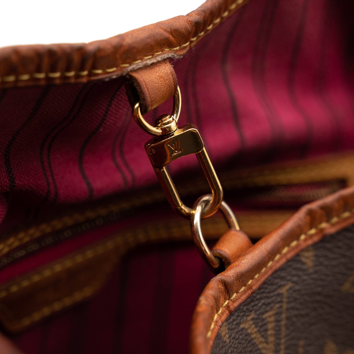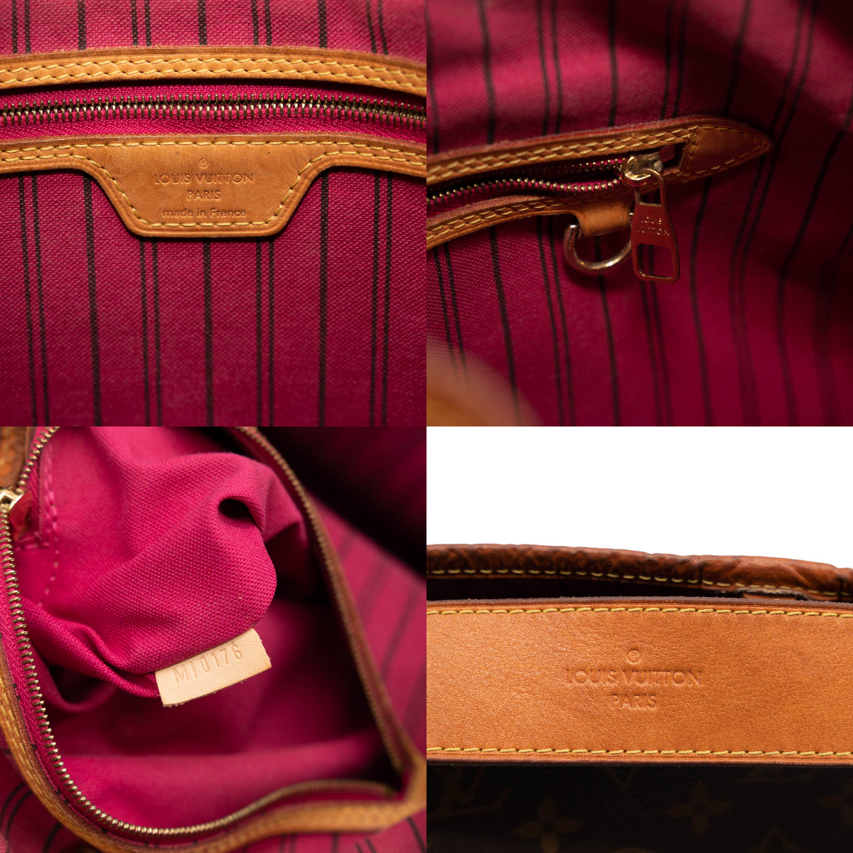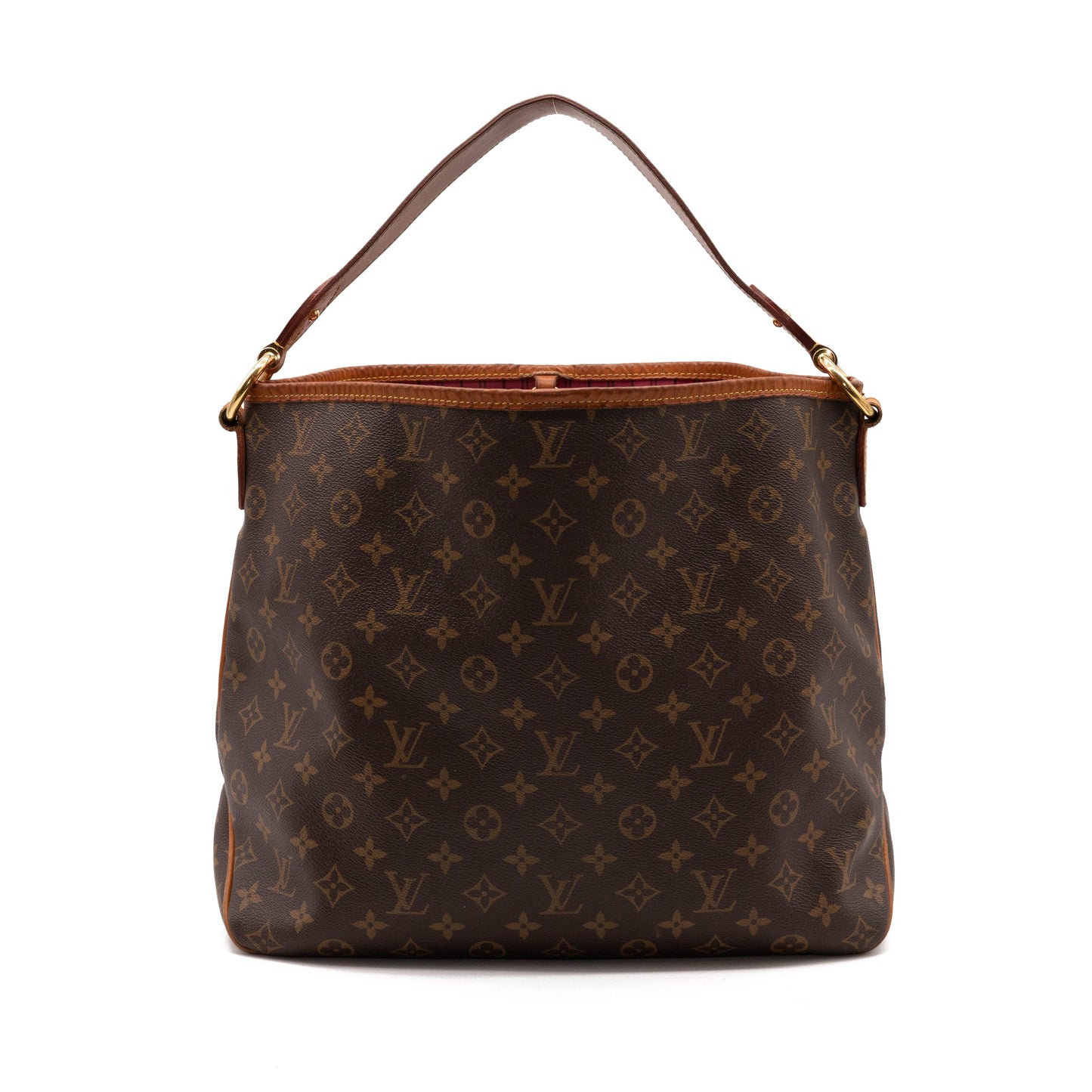 This is an authentic LOUIS VUITTON Monogram Delightful MM in Pivoine. This stylish bag is crafted of signature Louis Vuitton monogram coated canvas. The bag features a vachetta leather shoulder strap, piping, and side trim. The top is open to a dark pink striped fabric interior with a zipper pocket.