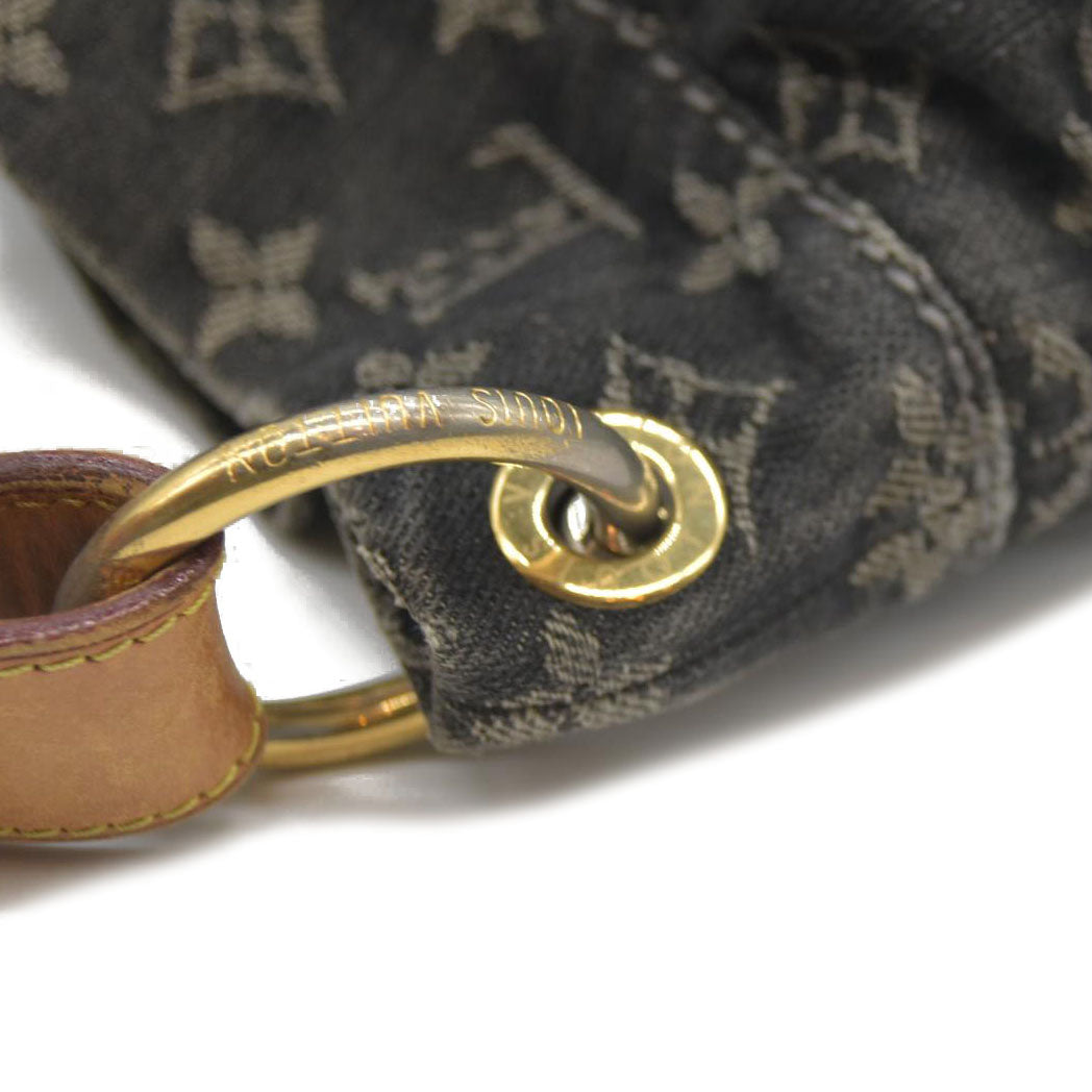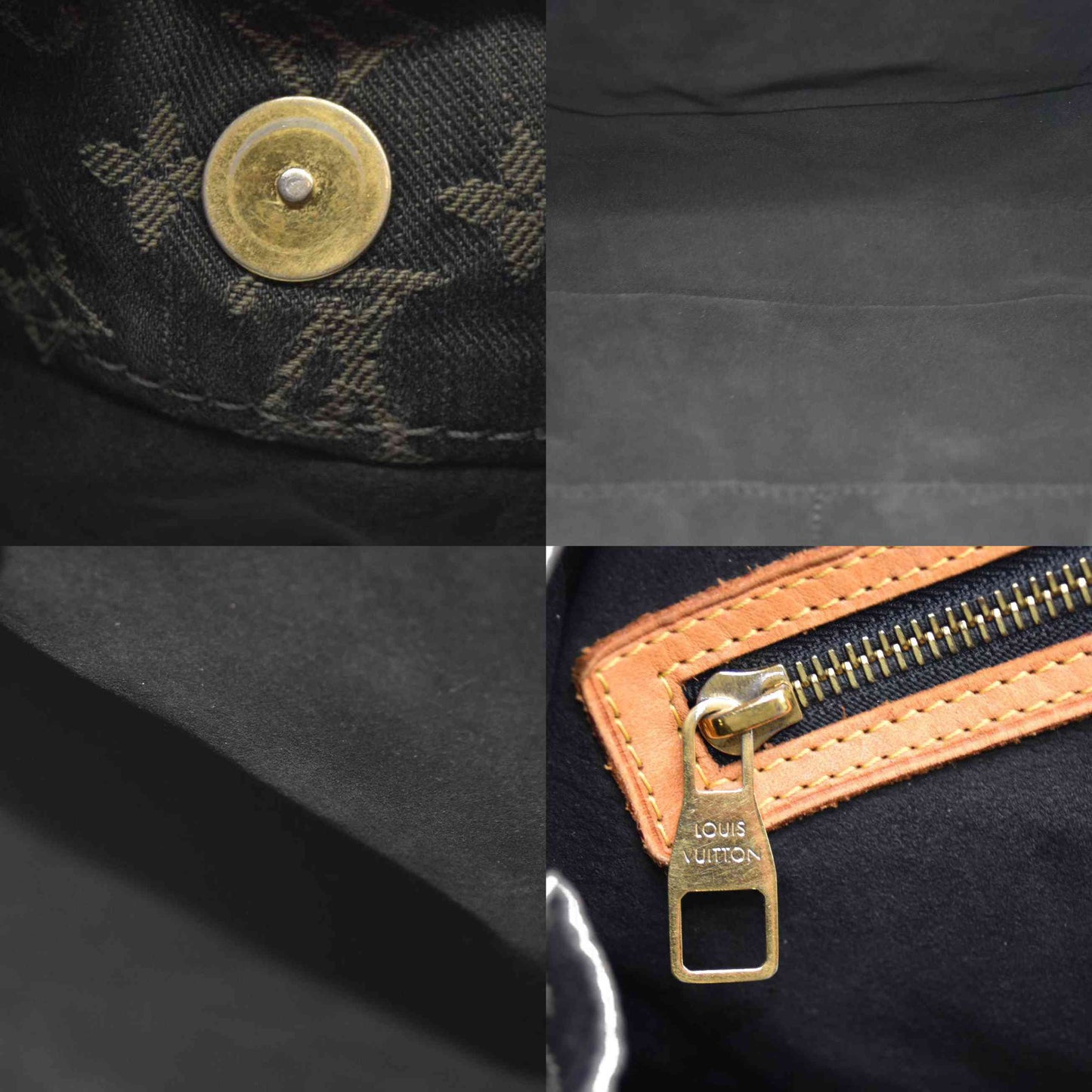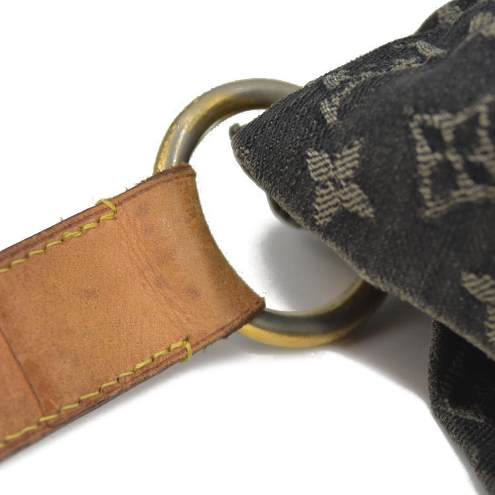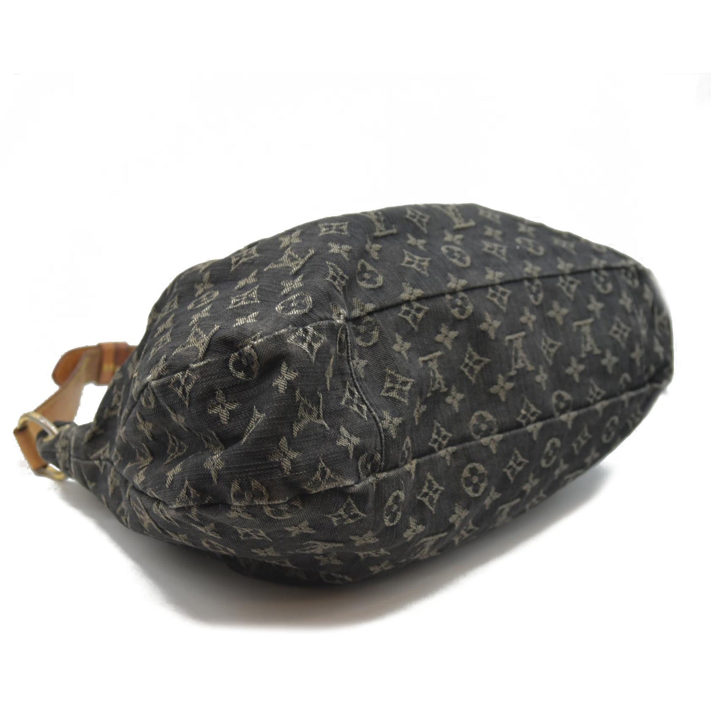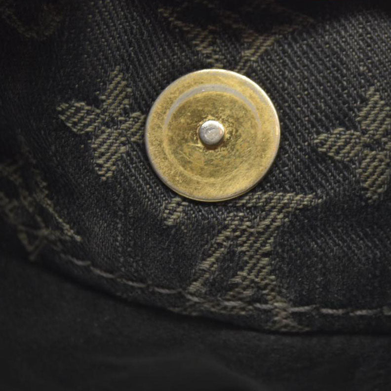 This is an authentic LOUIS VUITTON Denim Daily PM in Black. This is an excellent Louis Vuitton in a loose hobo style with a chic contemporary look. It is crafted out of black Louis Vuitton monogram denim that is tucked and tailored towards the top. The bag rises at the sides and extends upwards into a natural vachetta leather cowhide handle. The handle loops double back with brass handle rings and a brass top button closure.