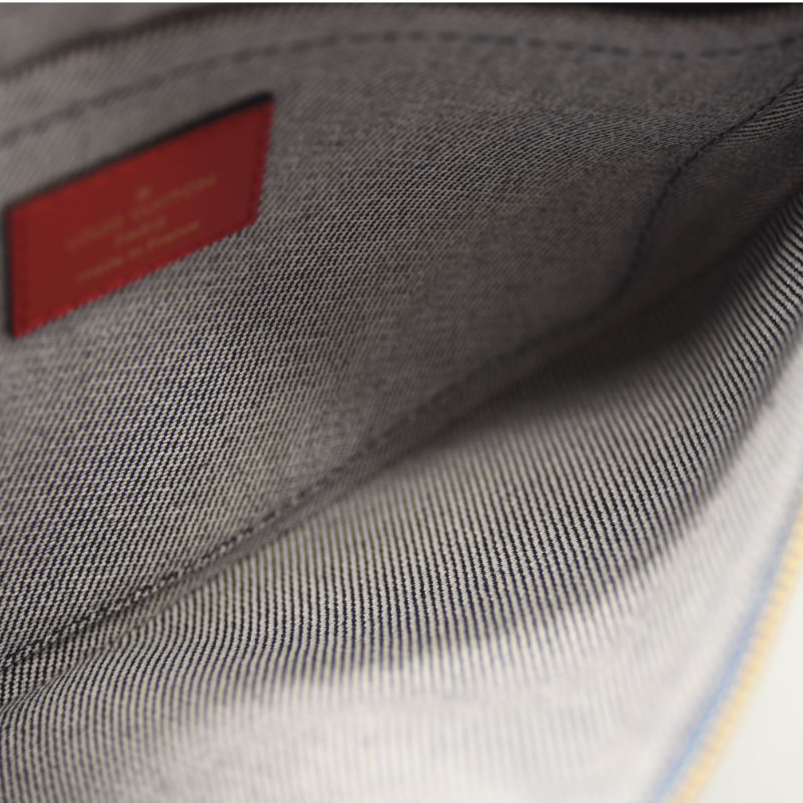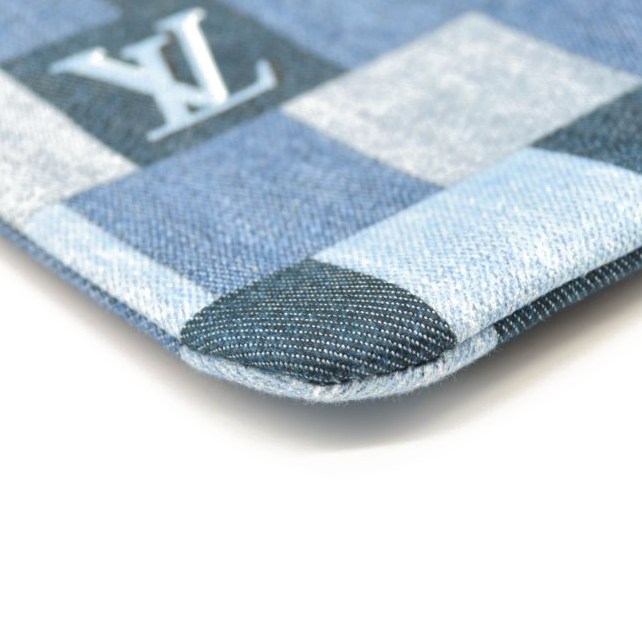 Louis Vuitton Denim Damier Monogram Patchwork Neverfull MM Pochette Blue Rouge
