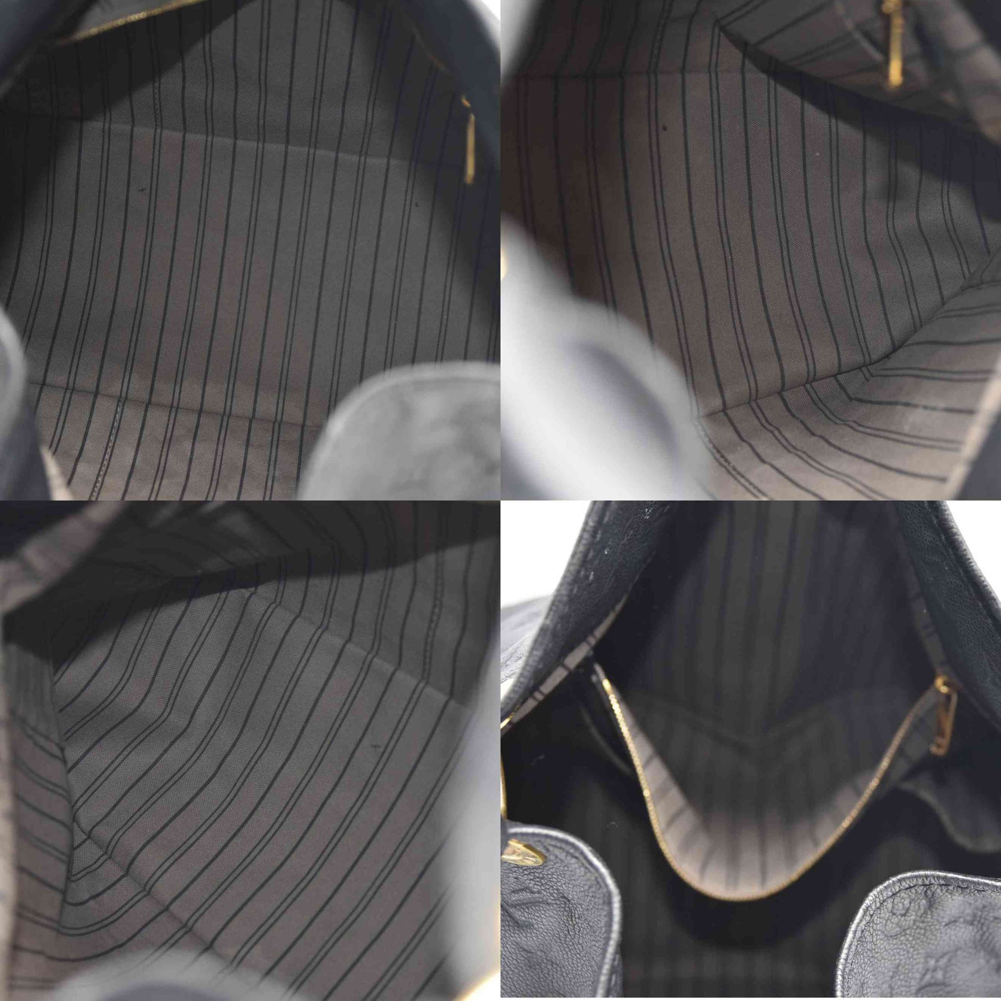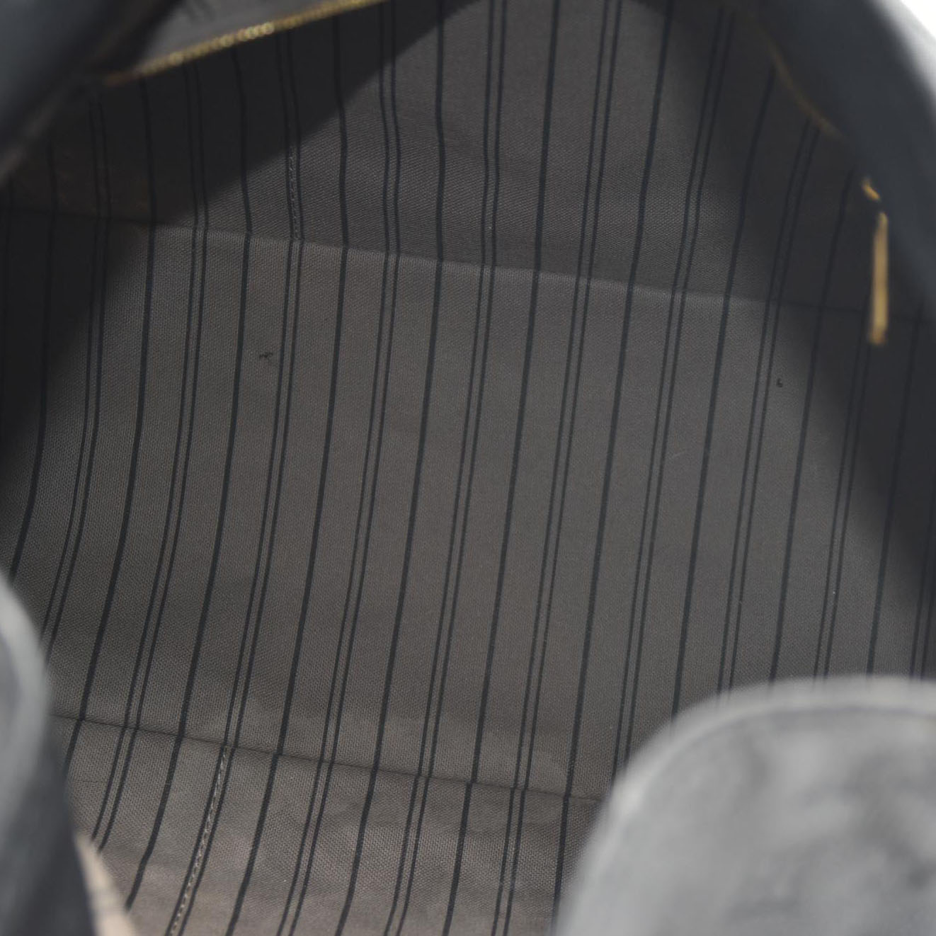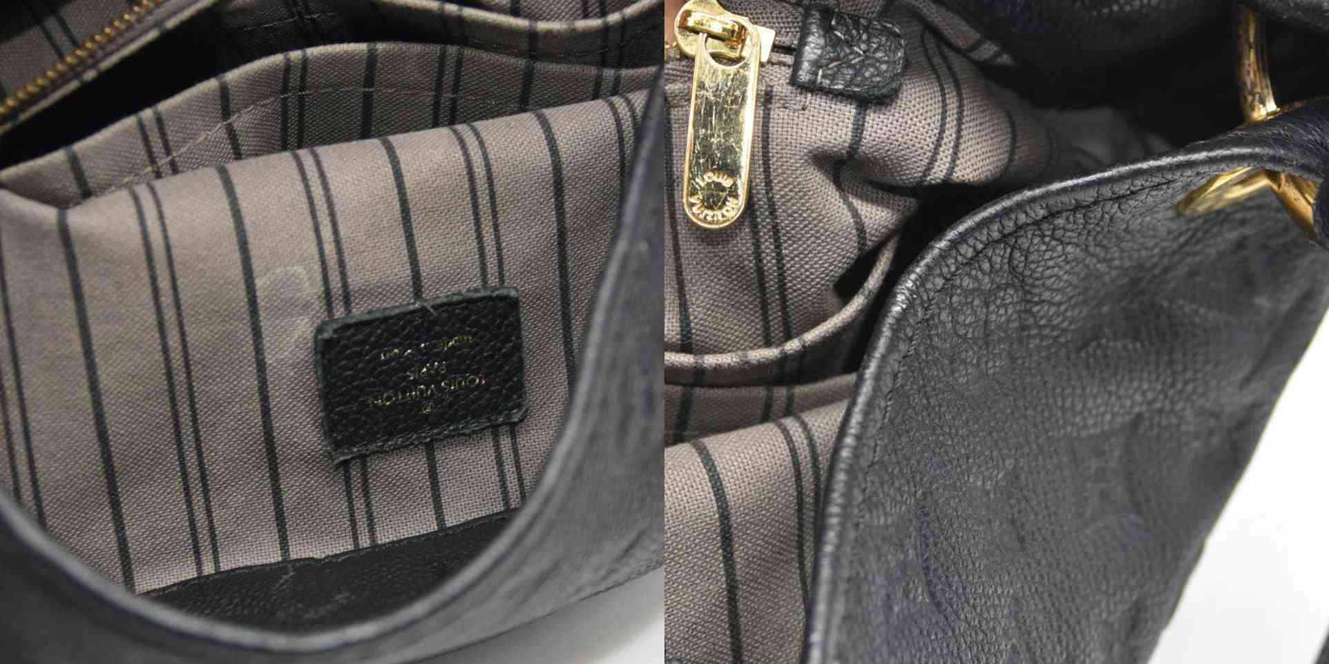 This is an authentic LOUIS VUITTON Empreinte Artsy MM in Black. This stunning hobo style shoulder bag is crafted of Louis Vuitton monogram embossed calfskin leather in black. This bag features a looping leather shoulder strap with woven braid detail and polished brass hardware. The top opens to a gray striped fabric interior with zipper and patch pockets.