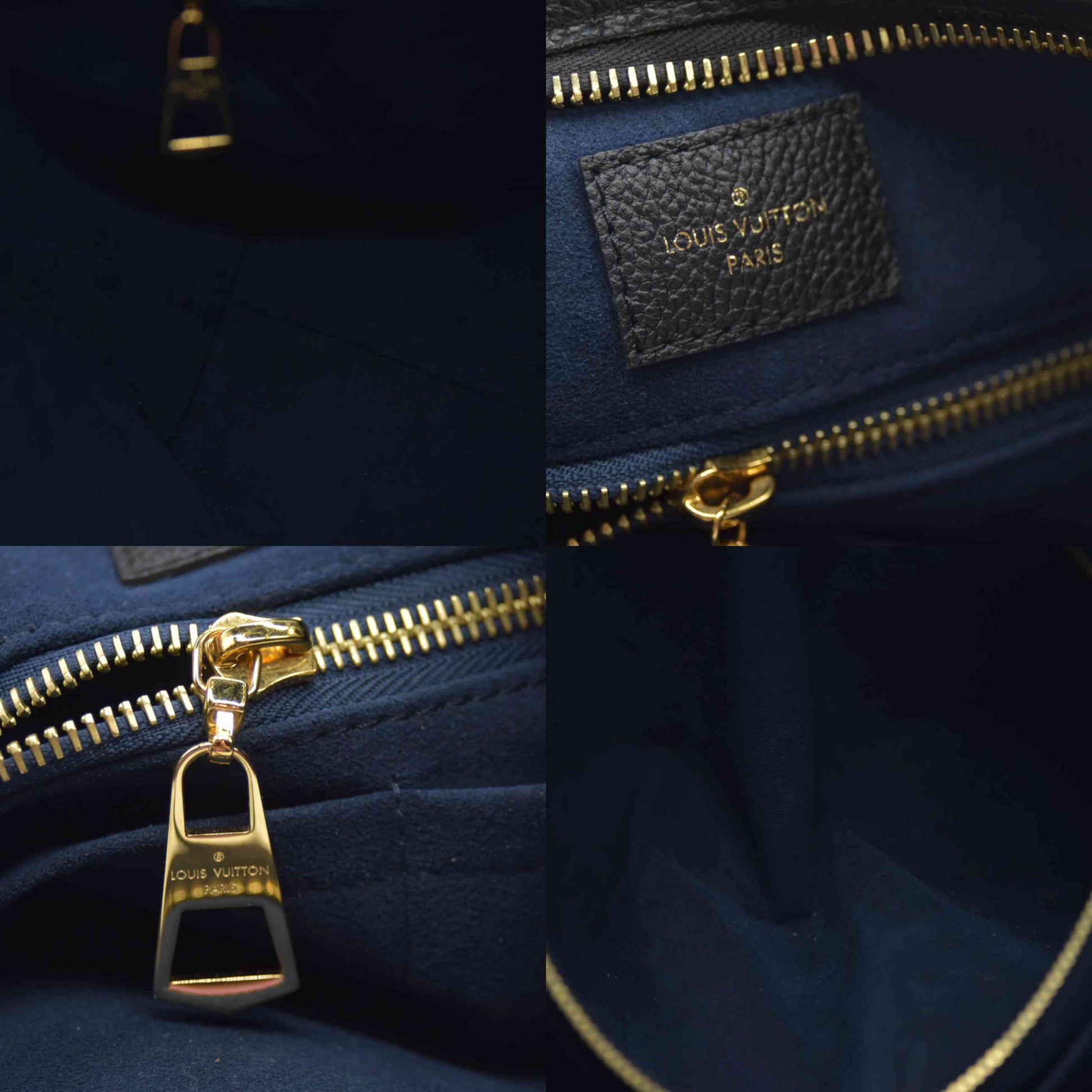 This is an authentic LOUIS VUITTON Empreinte Monogram Giant CarryAll MM in Black. This Carryall is crafted with the Louis Vuitton monogram on fine black leather. This handbag features a leather shoulder strap with gold tone buckles. The top opens to a blue suede interior with zipper and a patch pockets