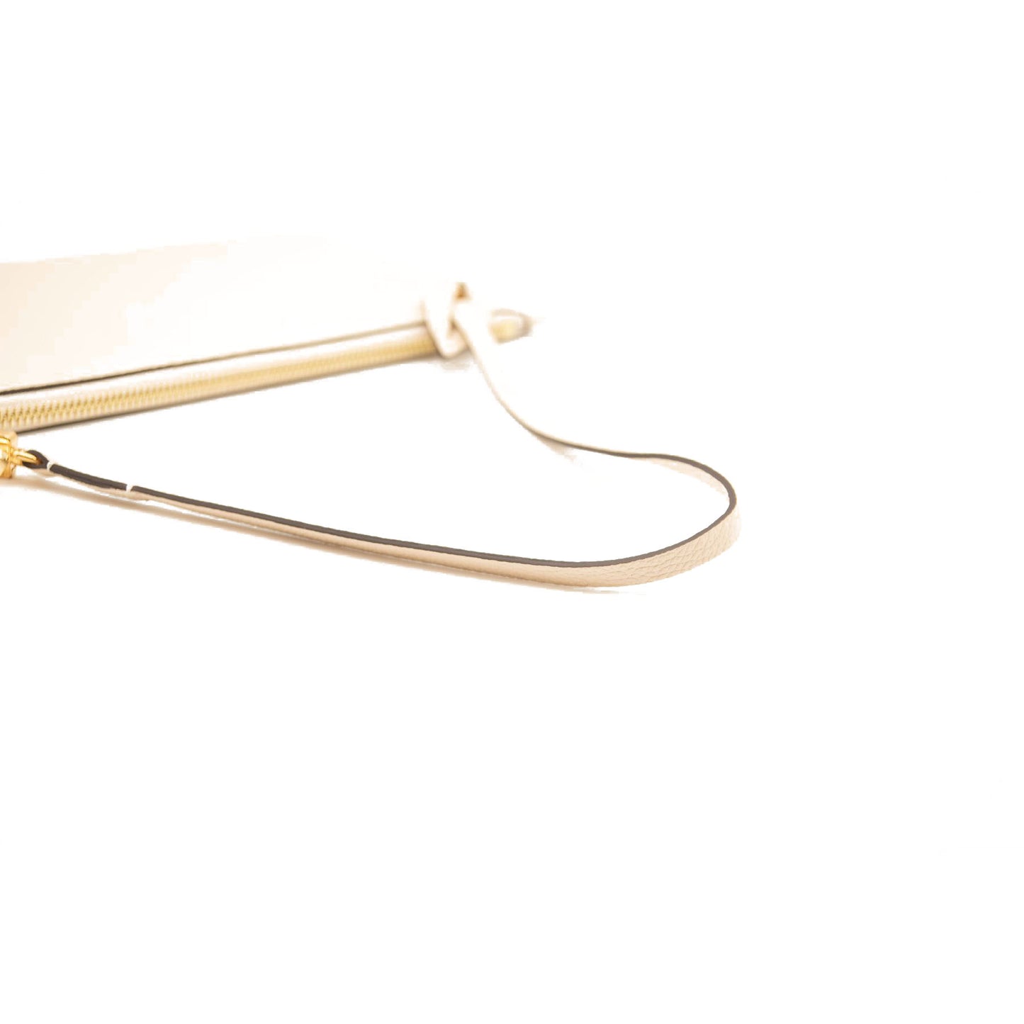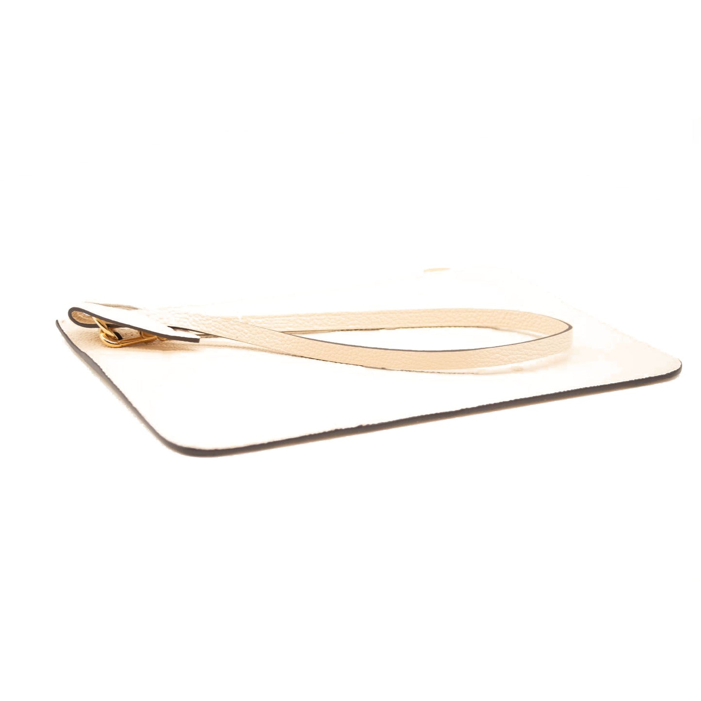 This is the authentic LOUIS VUITTON Empreinte Monogram Giant Neverfull MM Pochette in Cream. This chic pochette is made of embossed Louis Vuitton monogram leather in light beige and the gold top zipper opens to a dark brown microfiber interior.