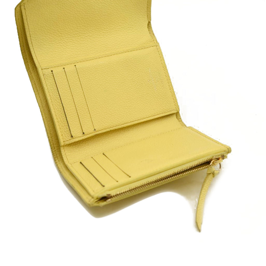 This is an authentic LOUIS VUITTON Empreinte Monogram Victorine Wallet in Lemon Curd. This compact wallet is crafted of classic Louis Vuitton monogram embossed leather in yellow with white LV logos. This small wallet features a snap facing flap that opens to a matching leather interior with two sets of card slots, a billfold, and a zipper compartment.
