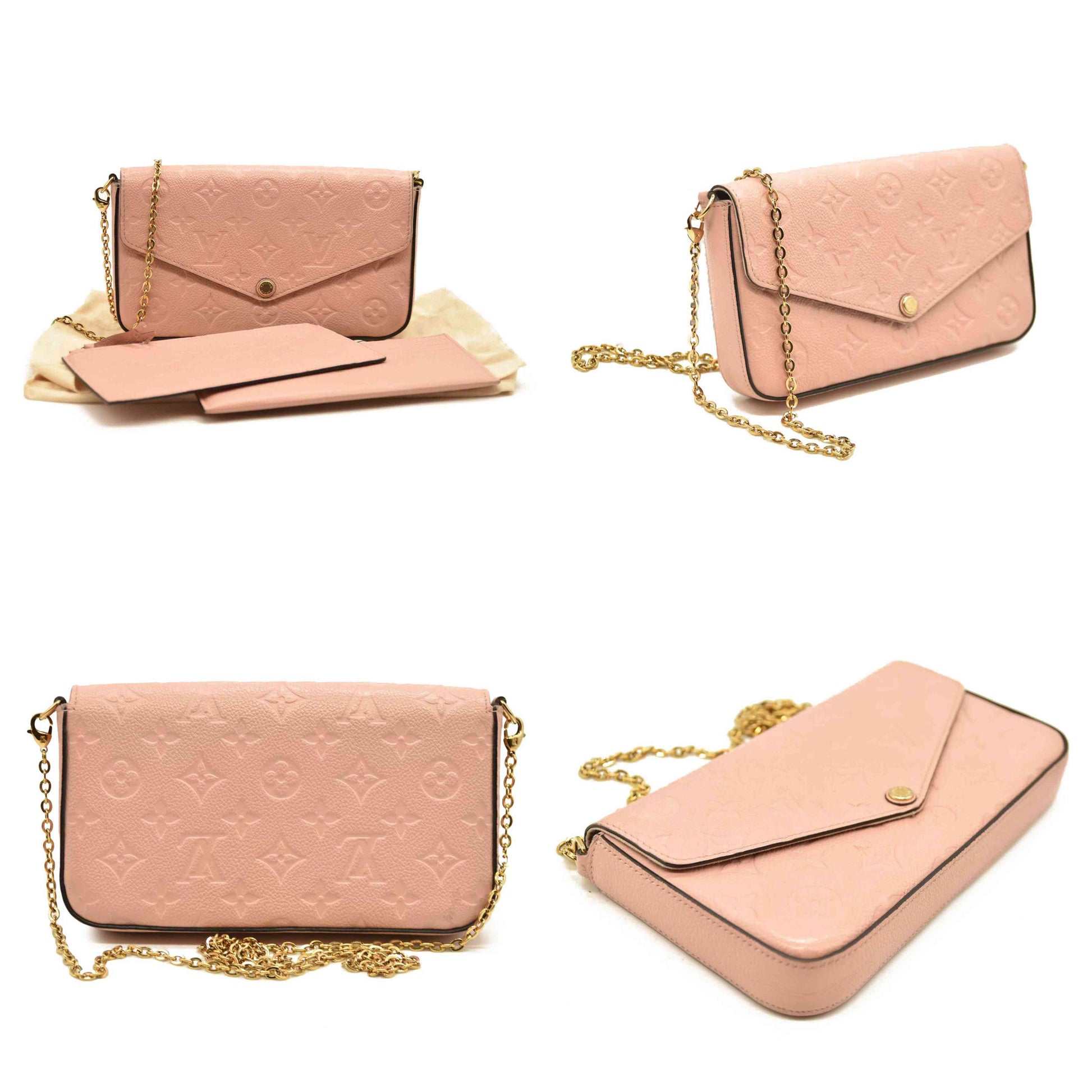 $1720 LOUIS VUITTON Empreinte Pochette Felicie Chain Wallet Rose Poudre