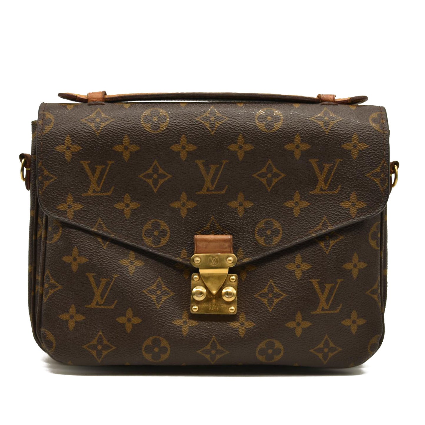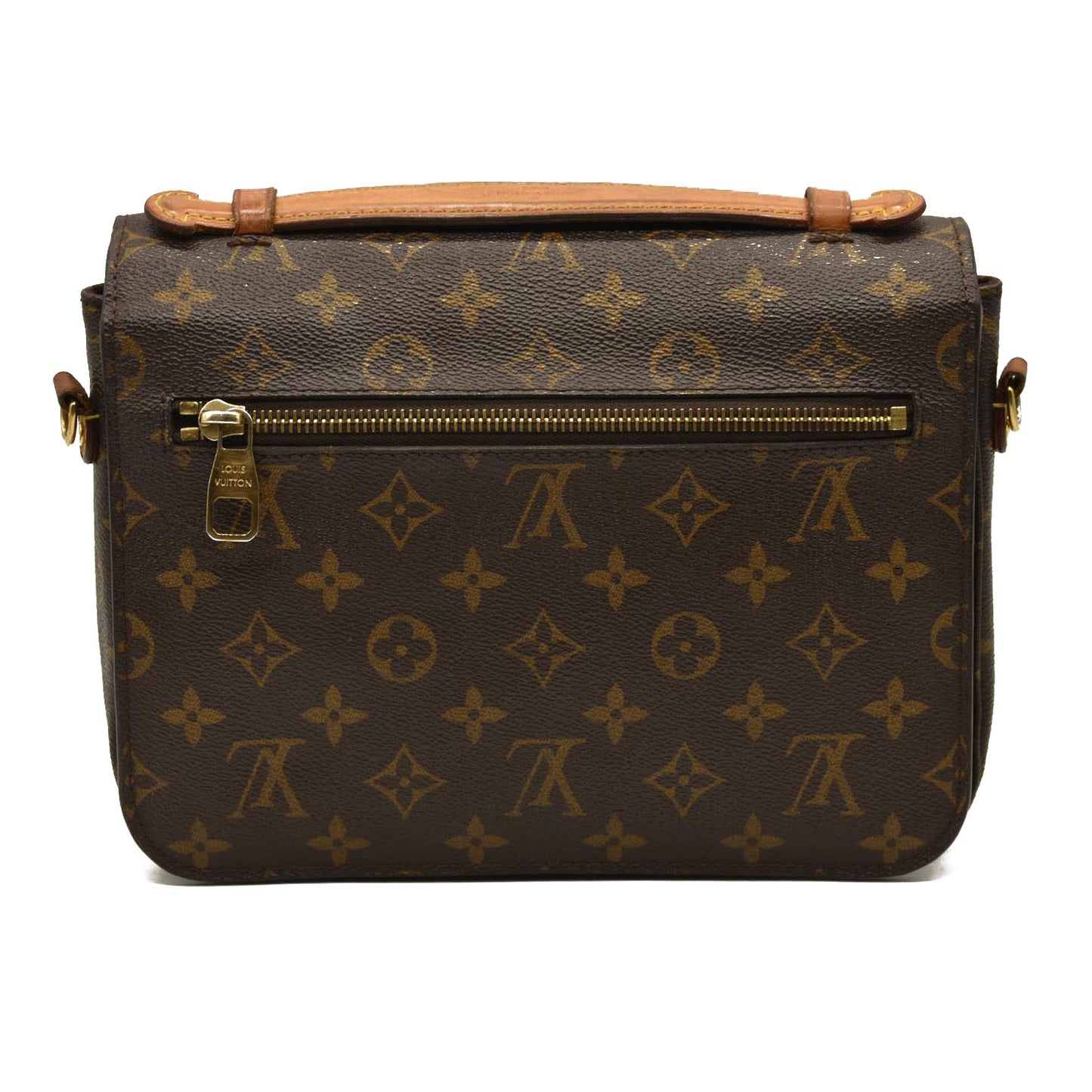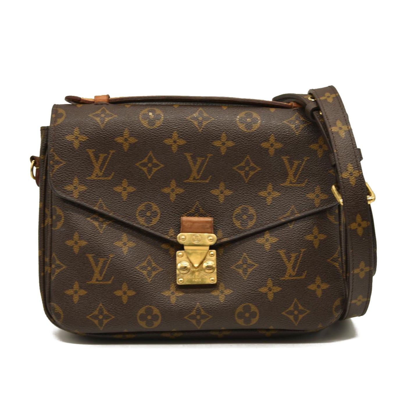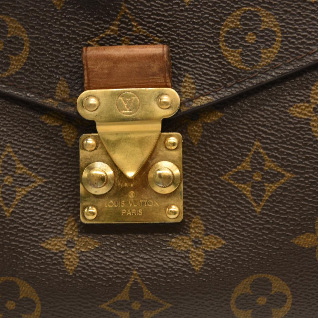 This is an authentic LOUIS VUITTON Monogram Pochette Metis. This chic handbag is finely crafted of classic Louis Vuitton monogram toile canvas. The bag features a vachetta cowhide leather handle, an optional, adjustable monogram coated canvas shoulder strap, and a rear zipper pocket. The crossover flap opens with a polished brass S-lock to a partitioned brown microfiber interior.