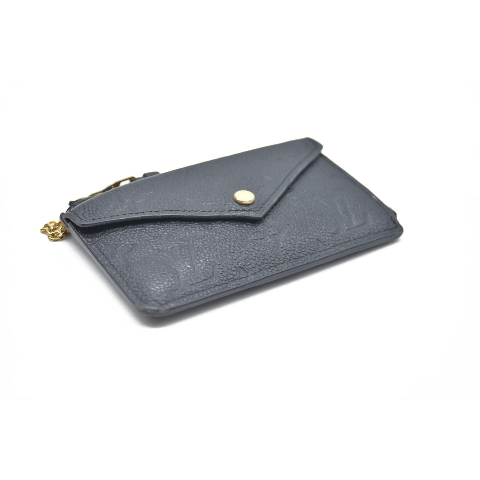 This is an authentic LOUIS VUITTON Empreinte Recto Verso Card Holder in Black. This very chic cardholder is finely crafted of Louis Vuitton monogram-embossed leather in black. The case features a front envelope pocket, card slots on the back, and a zipper currency compartment with a key ring clasp.