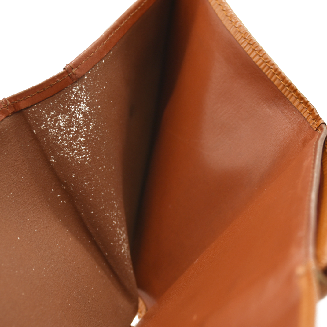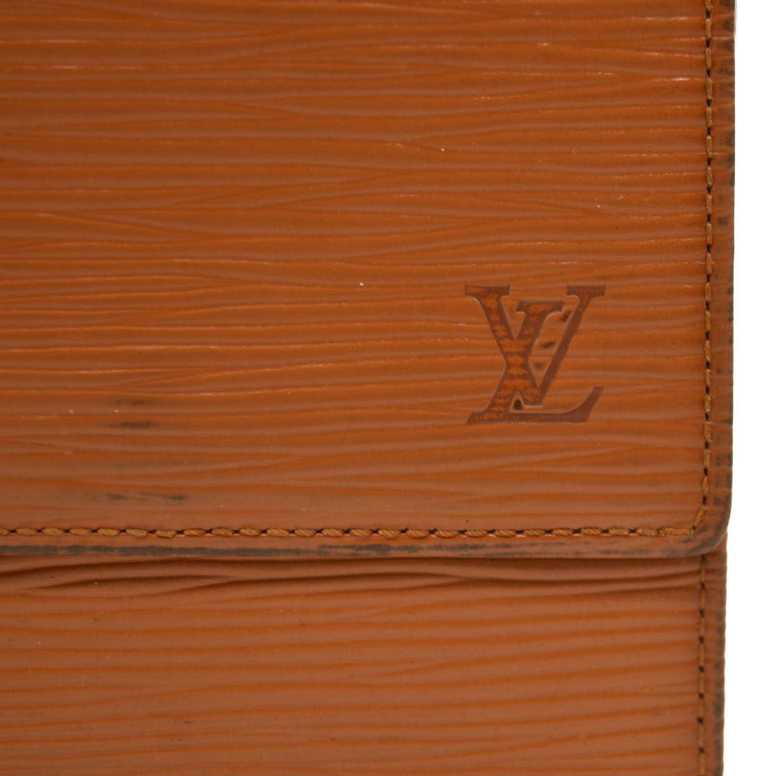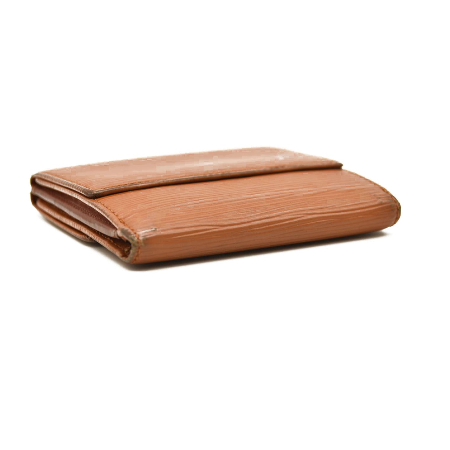 This is an authentic LOUIS VUITTON Epi Elise Wallet in Kenyan Fawn. This circa 1990 stylish compact wallet is crafted of Louis Vuitton epi textured leather in a shade of brown. The wallet features a flap that opens to a cross grain leather interior with card slots, patch pockets and a bill fold and a reverse flap that opens to a currency compartment. This is a perfect wallet that is ideal for everyday use, from Louis Vuitton!