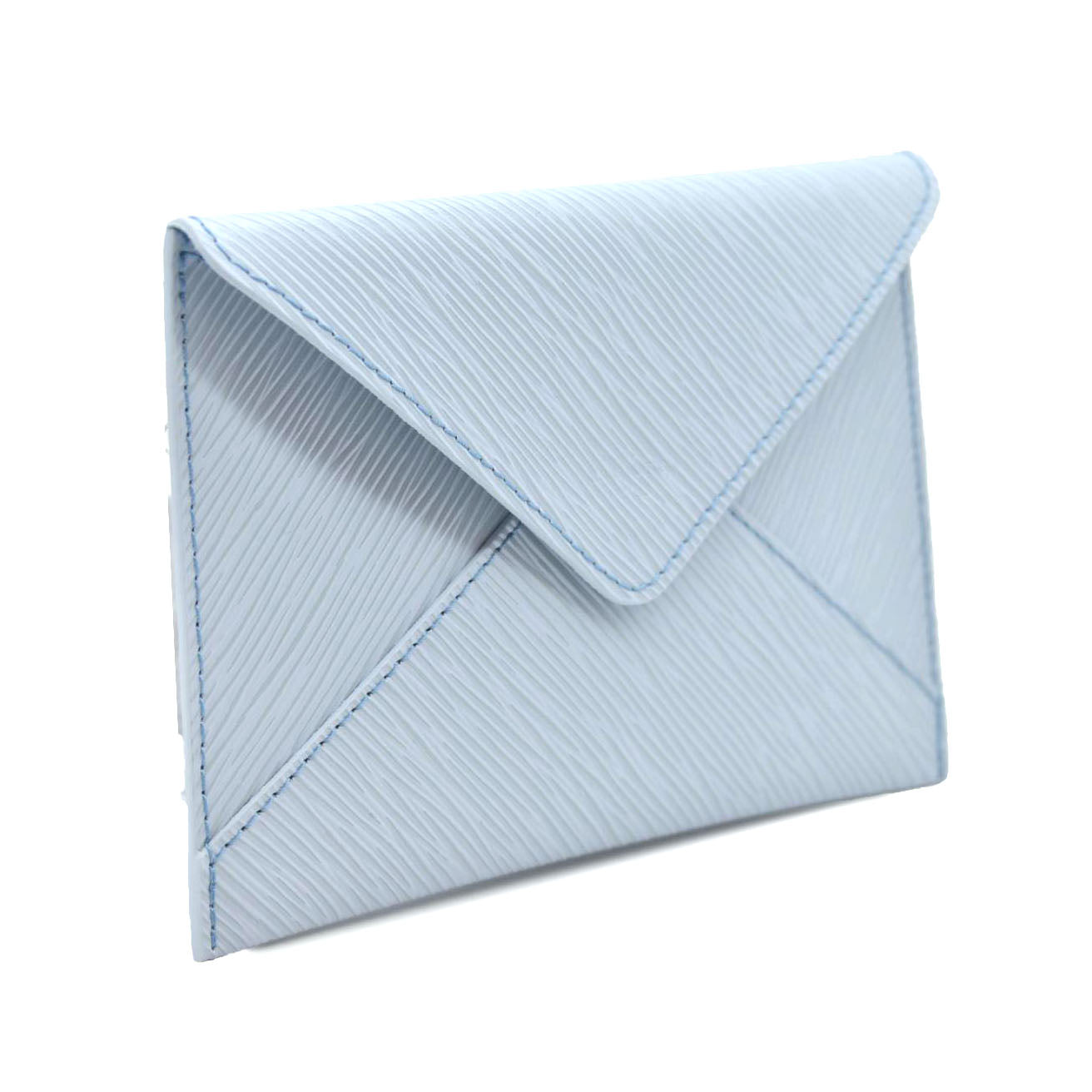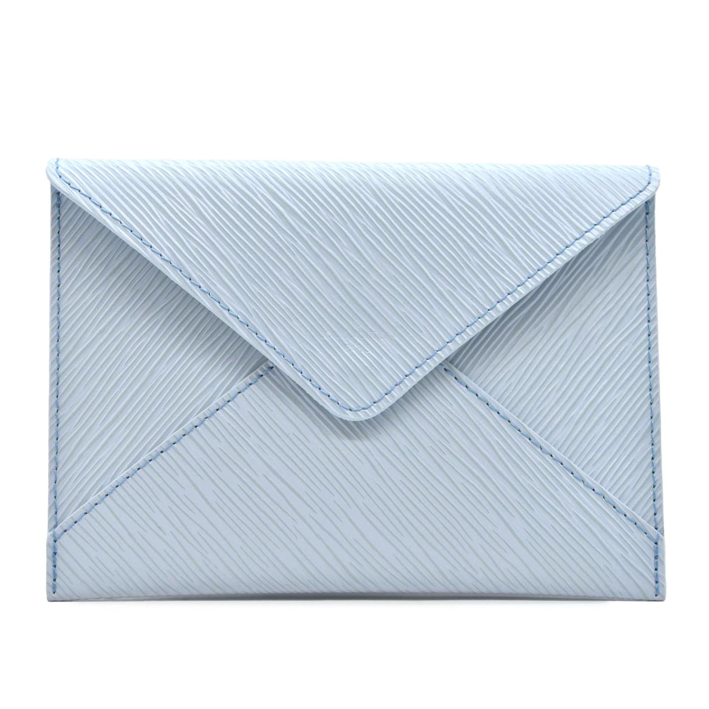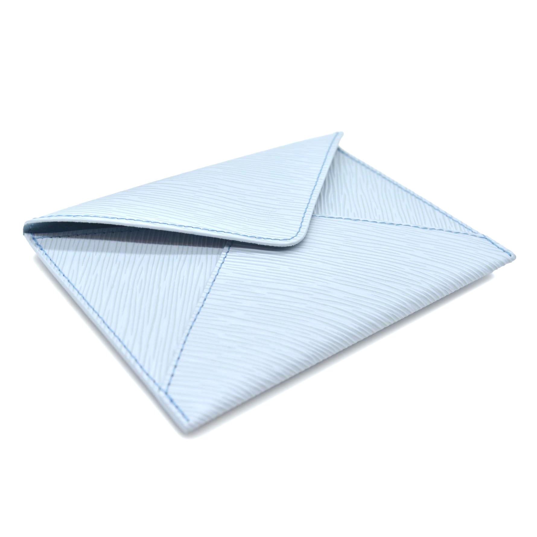 This is an authentic LOUIS VUITTON Epi Envelope Pouch in Light Blue. This is a chic pouch from the epi line of Louis Vuitton leather goods with a stylized modern look. The pouch opens to a deeper blue microfiber interior.