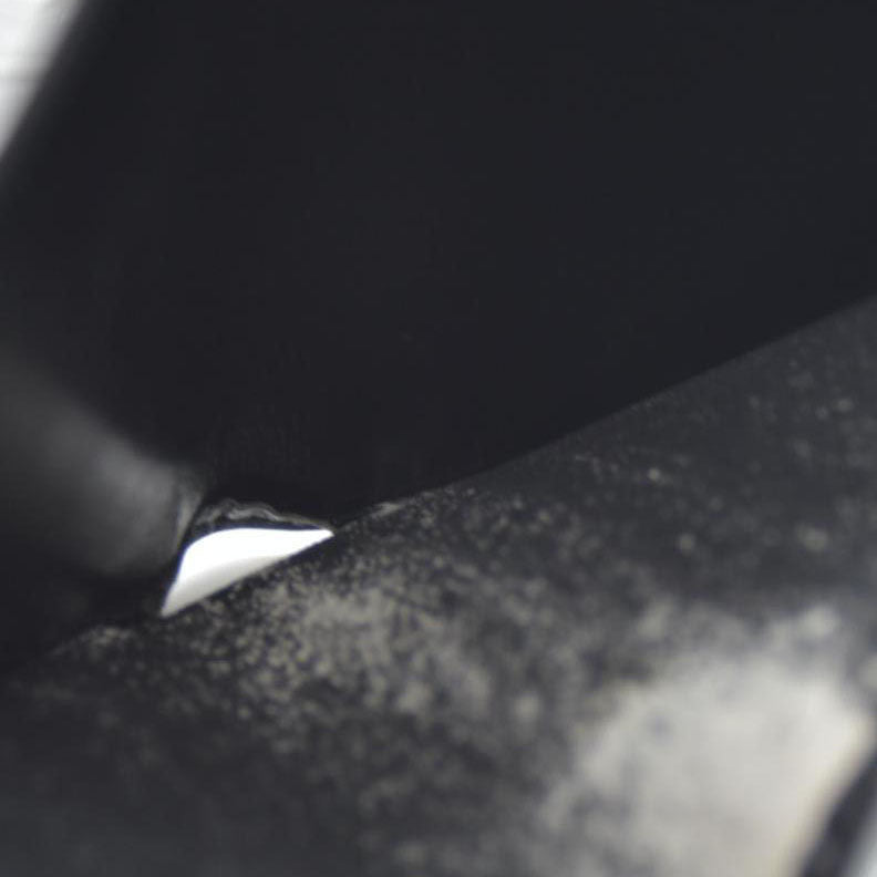 The exterior is rubbed with scratches. There are rubbed marks on the inside. The inside of pocket/cash compartment are peeled.