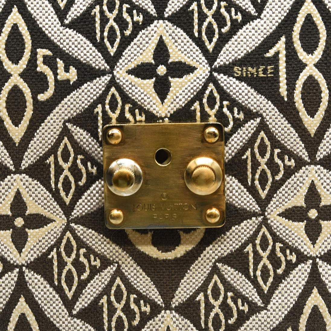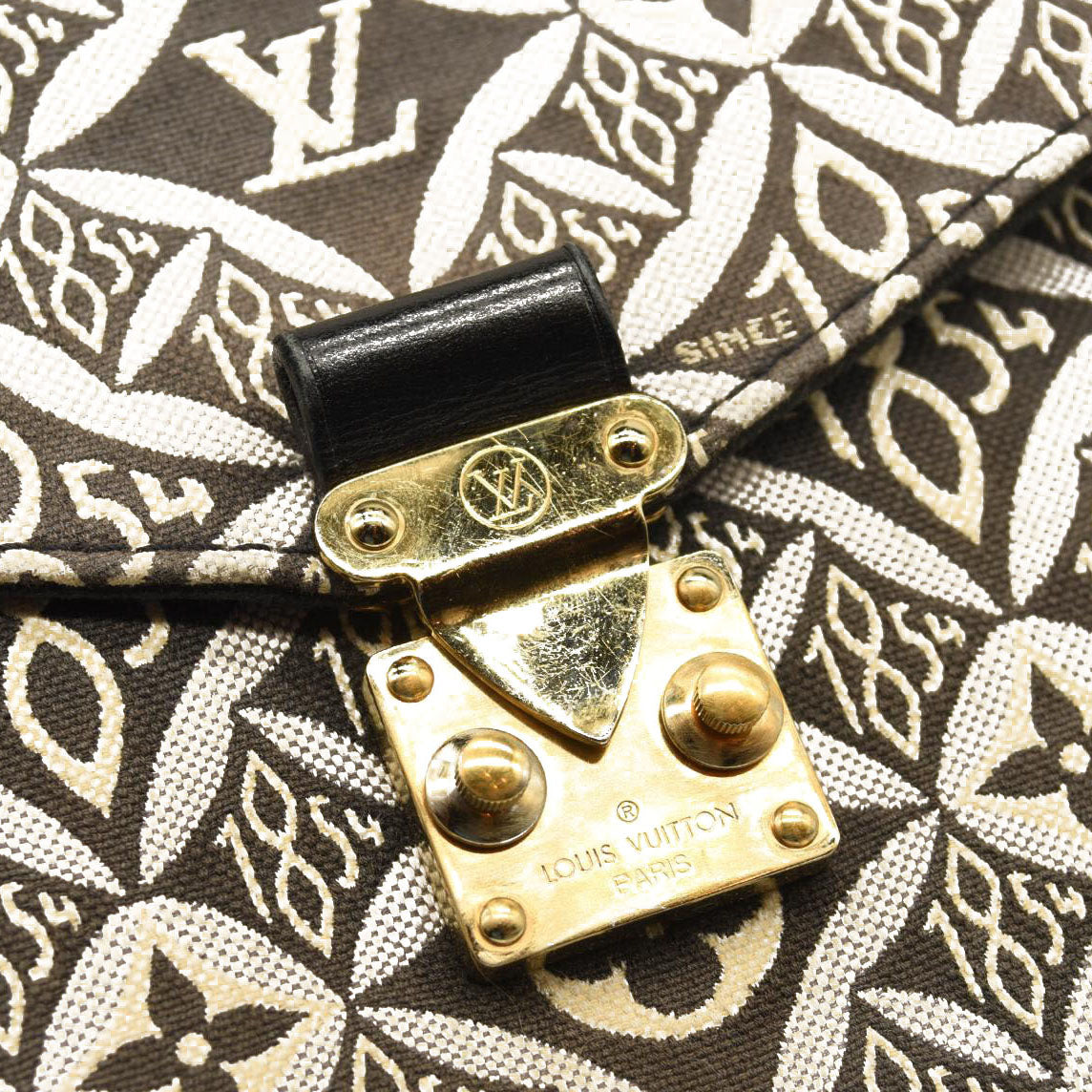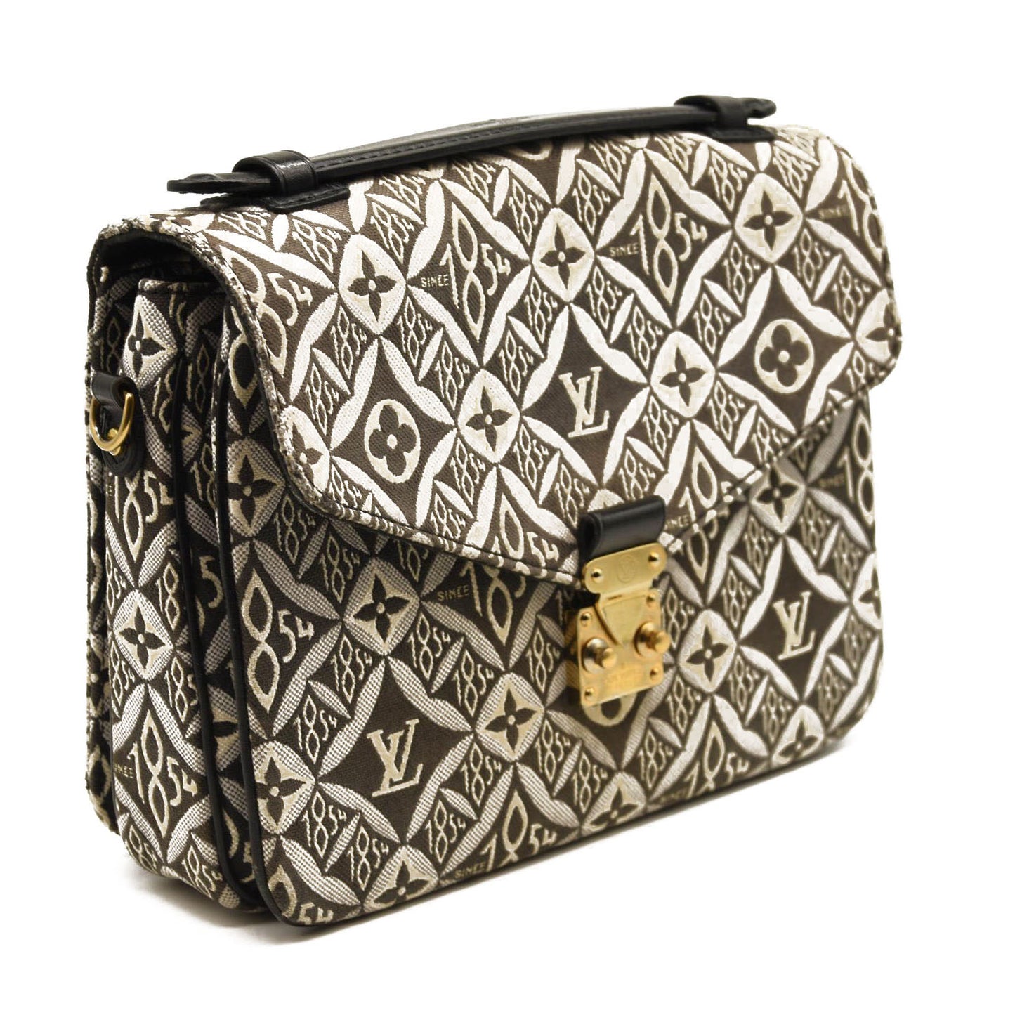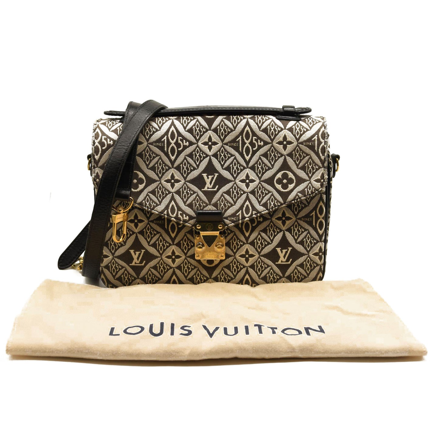 This is an authentic LOUIS VUITTON Jacquard Since 1854 Pochette Metis in Grey. This limited edition bag is crafted of canvas with a monogram 1854 print. The bag features a top handle, an optional shoulder strap, a rear zipper pocket, and gold hardware. The gold S-lock opens to a black microfiber interior.