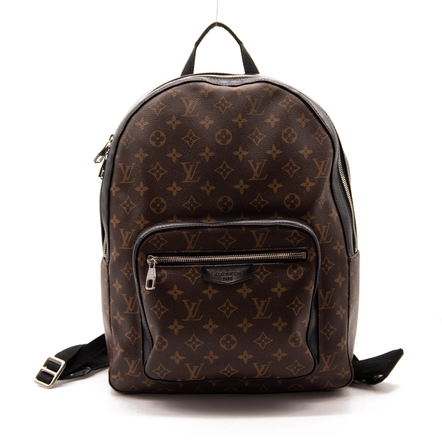 We guarantee this is an authentic LOUIS VUITTON Monogram Macassar Josh Backpack or 100% of your money back. This stylish backpack is crafted of Louis Vuitton signature monogram coated canvas. It features smooth black leather trim, a small front zipper compartment, and adjustable black nylon shoulder straps. The polished silver wrap-around zippers open to a burgundy fabric interior with patch pockets.