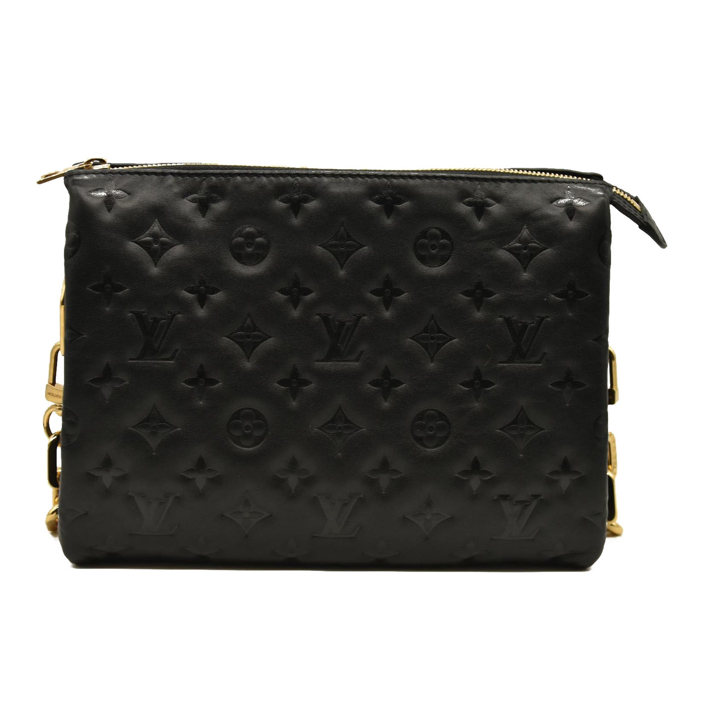 LOUIS VUITTON Lambskin Embossed Monogram Coussin PM Black