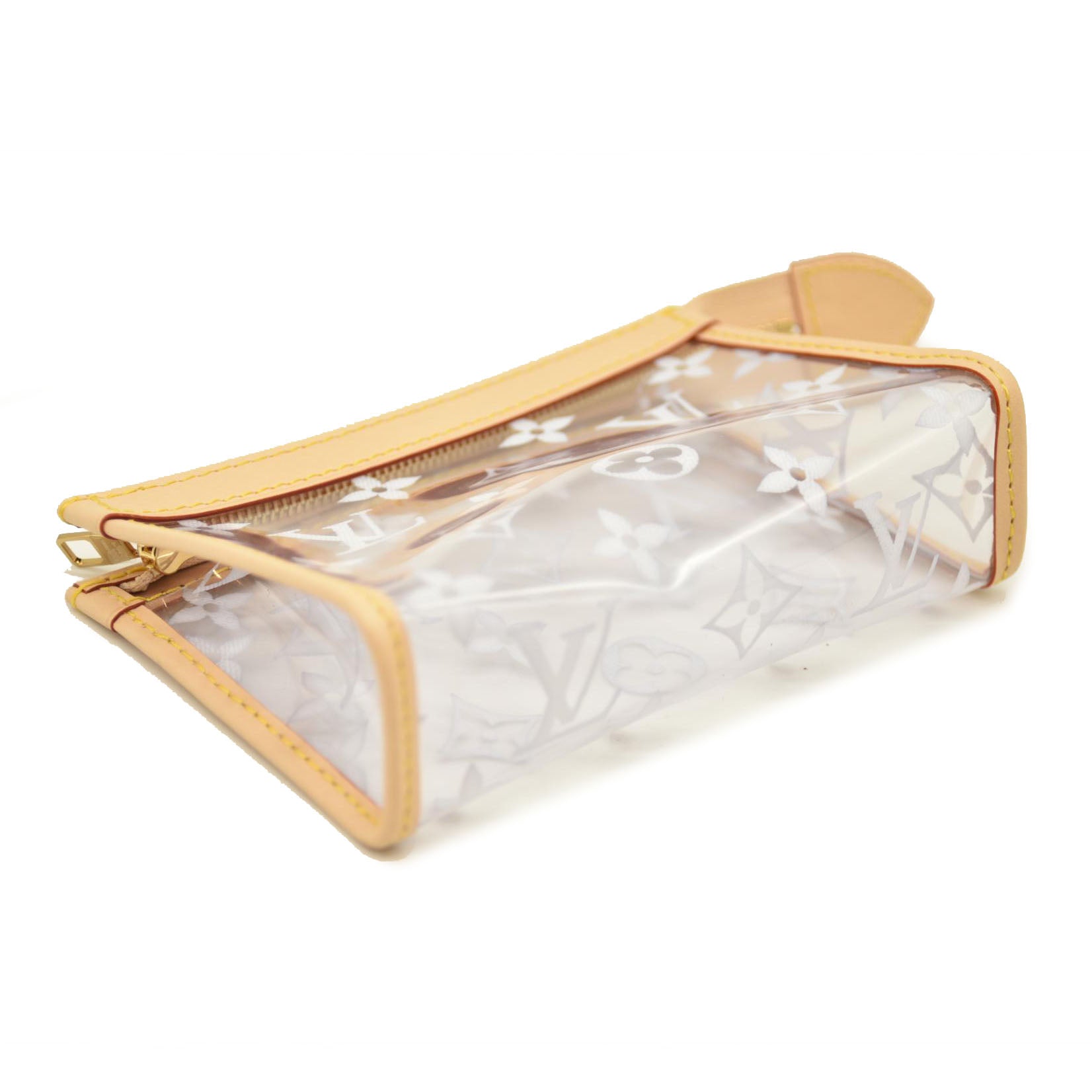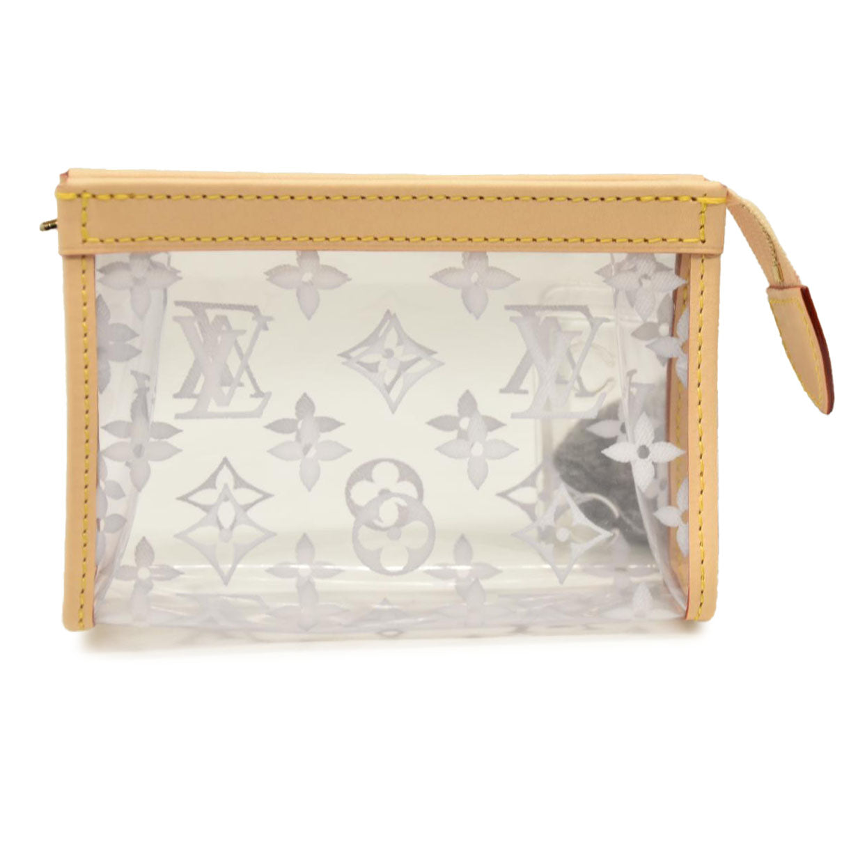 The translucent Poche Toilette is the perfect way to organize belongings inside a travel or city bag. The subtle Monogram print and natural cowhide leather bring style.